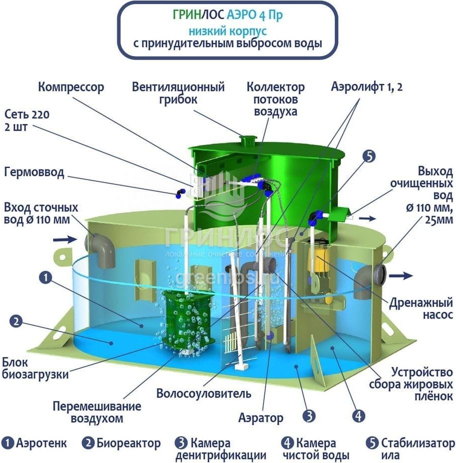 Особенности септика ГРИНЛОС Аэро 4 низкий корпус Пр