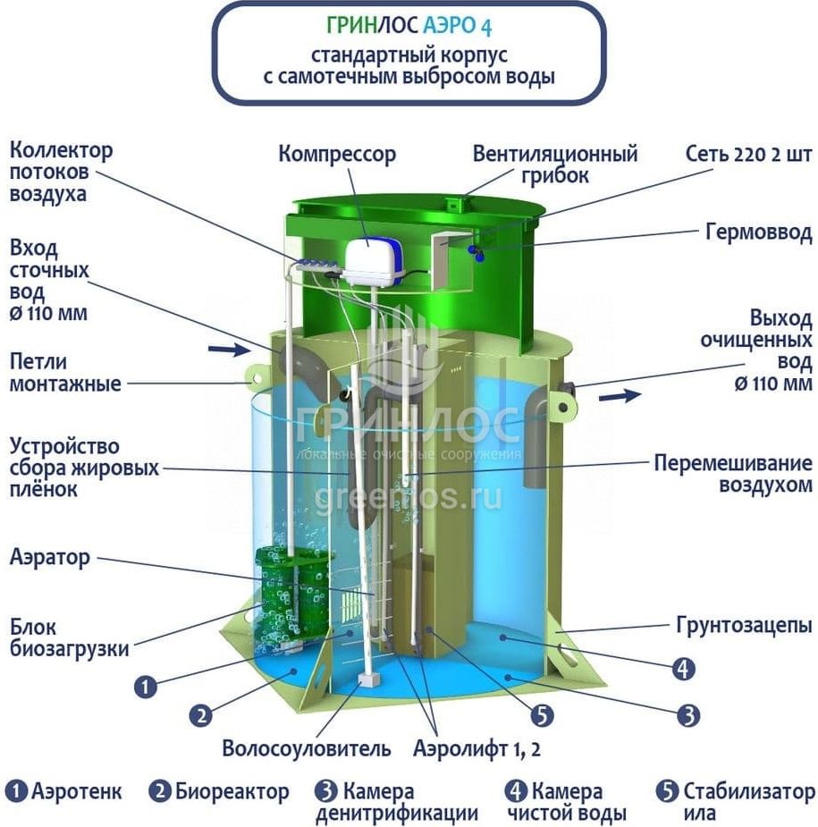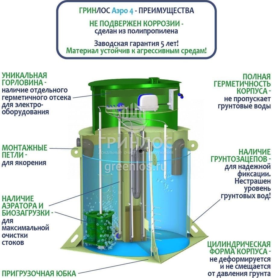 Отличительными особенностями септика ГРИНЛОС Аэро 4 являются: