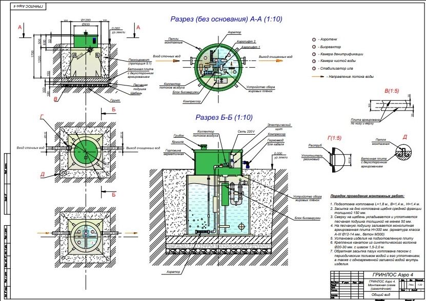 Монтаж септика ГРИНЛОС Аэро 4