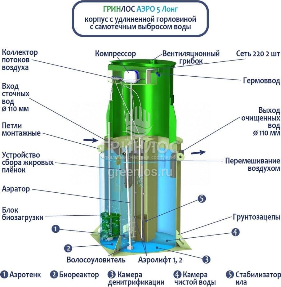 Модификации септика ГРИНЛОС Аэро 5 Лонг