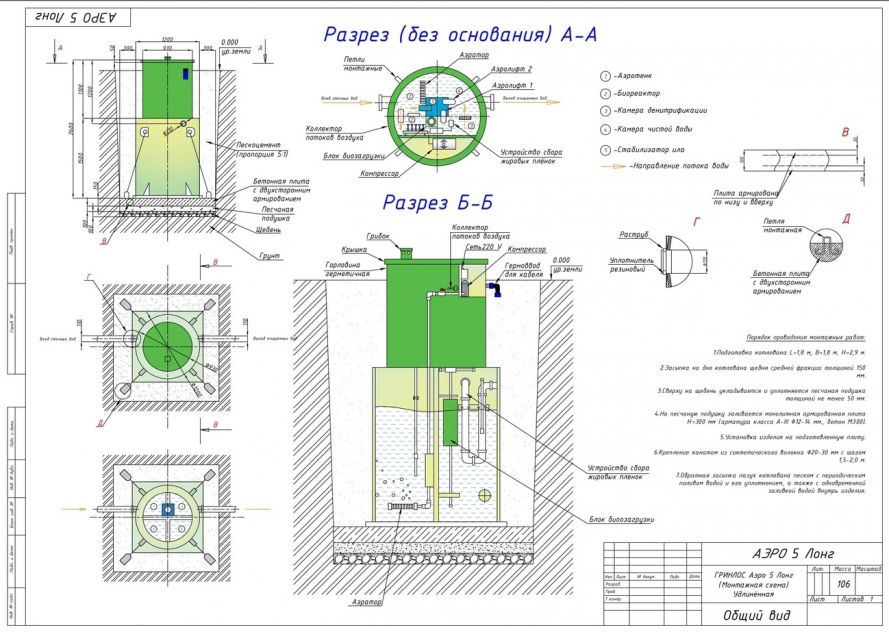 Монтаж септика ГРИНЛОС Аэро 5 Лонг