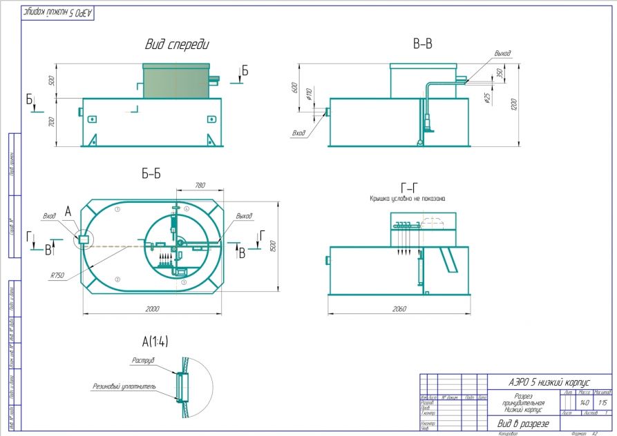 Станция ГРИНЛОС Аэро 5 низкий корпус Пр сконструирована таким образом, что все камеры, в которых происходит аэрация, разделение и осветление стоков объединены в одном корпусе цилиндрической или овальной формы.