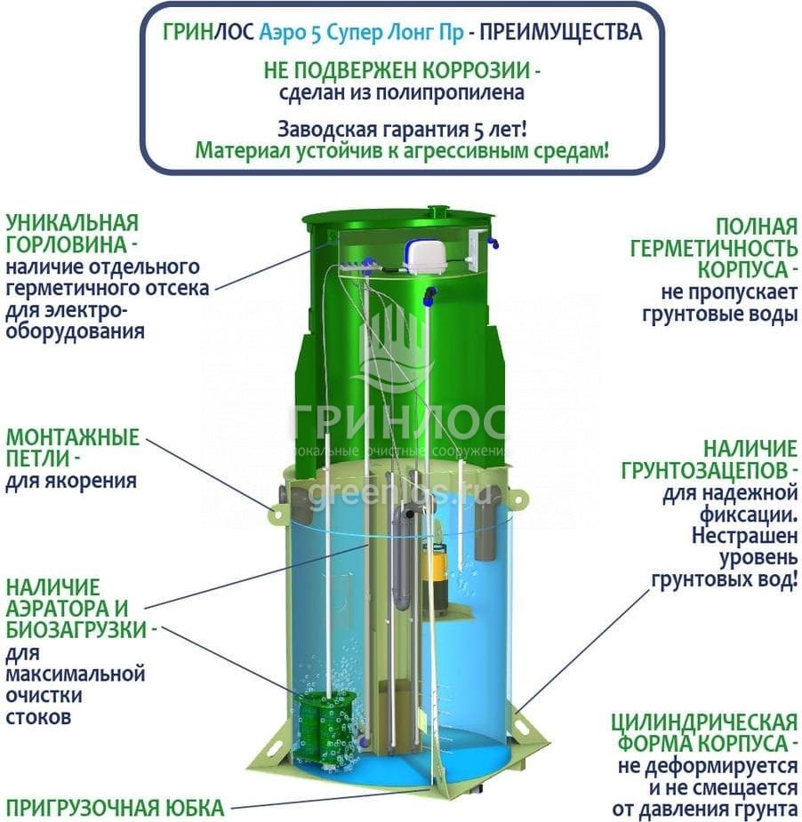Модификации септика ГРИНЛОС Аэро 5 Пр Супер Лонг