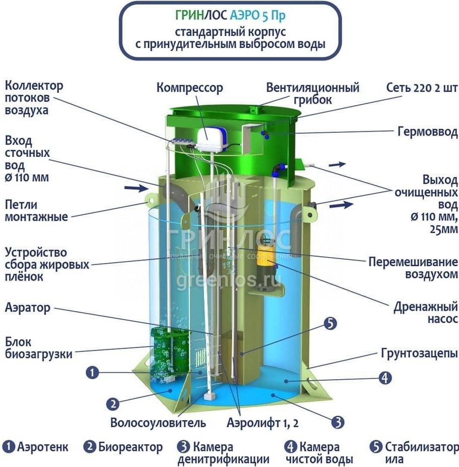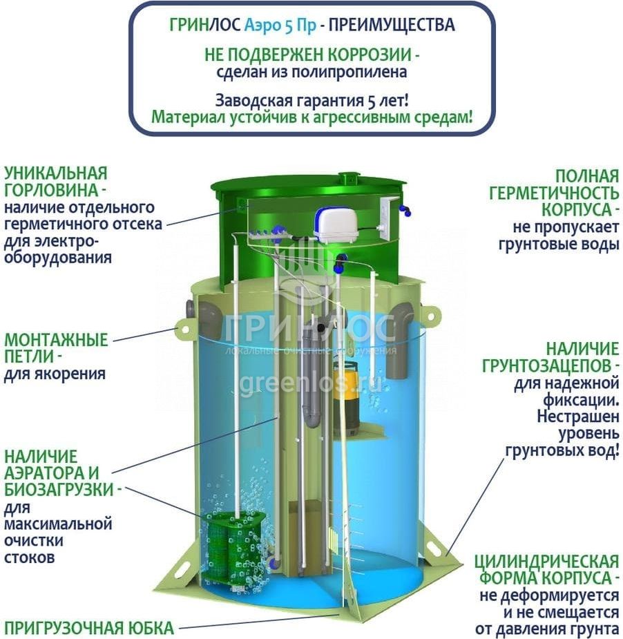 Отличительными особенностями септика ГРИНЛОС Аэро 5 Пр являются: