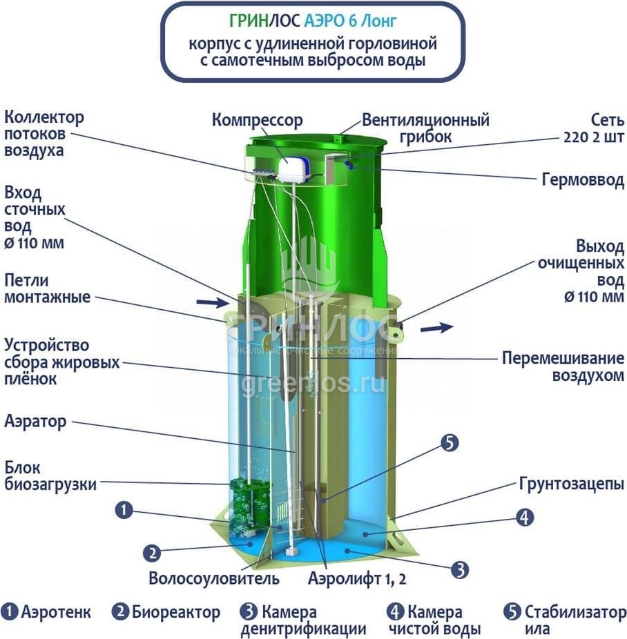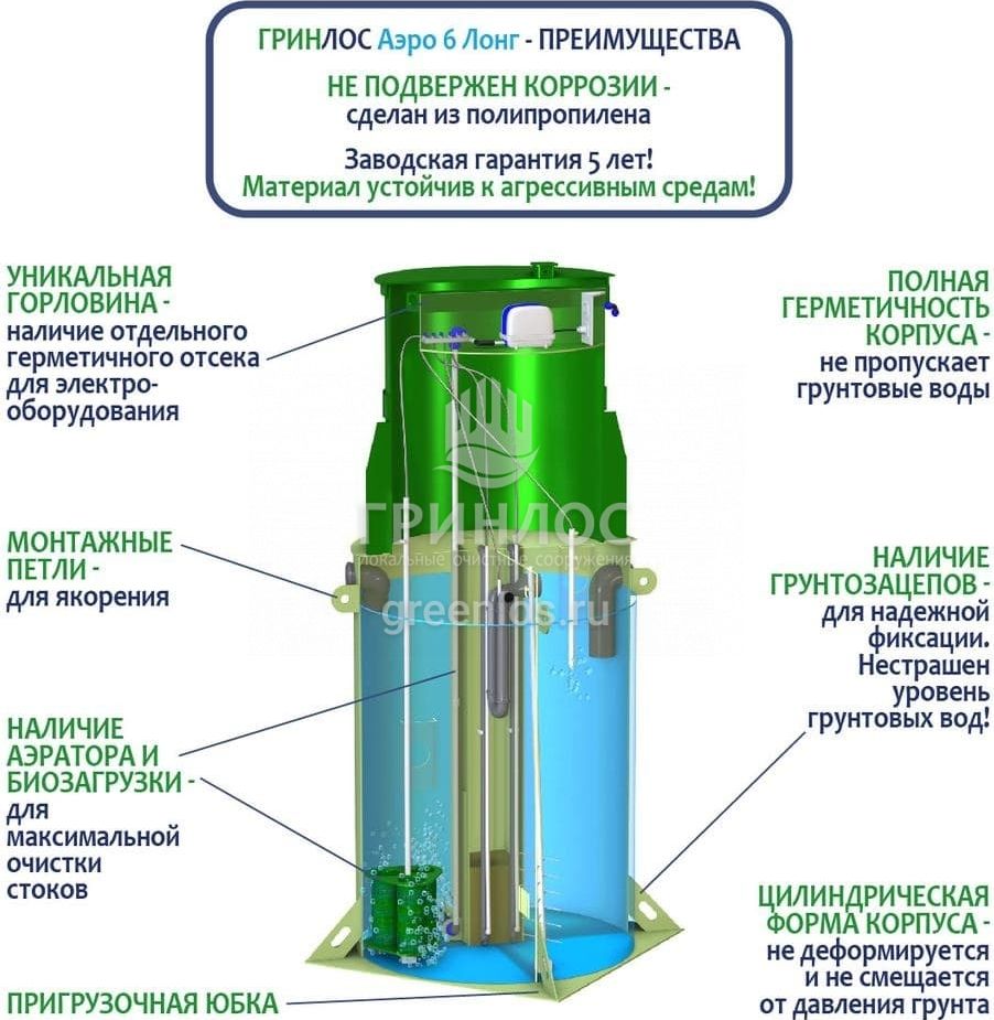 Модификации септика ГРИНЛОС Аэро 6 Лонг