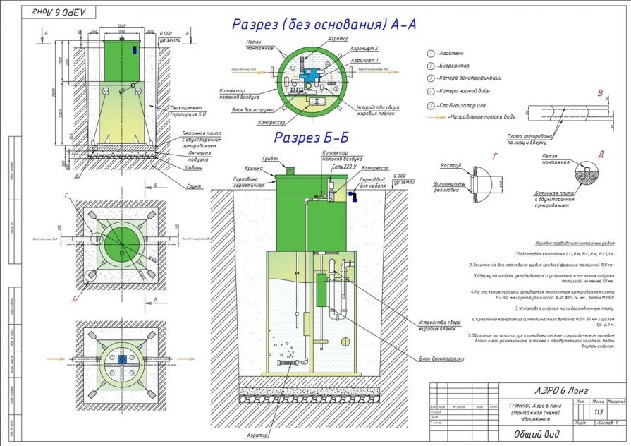 Монтаж септика ГРИНЛОС Аэро 6 Лонг