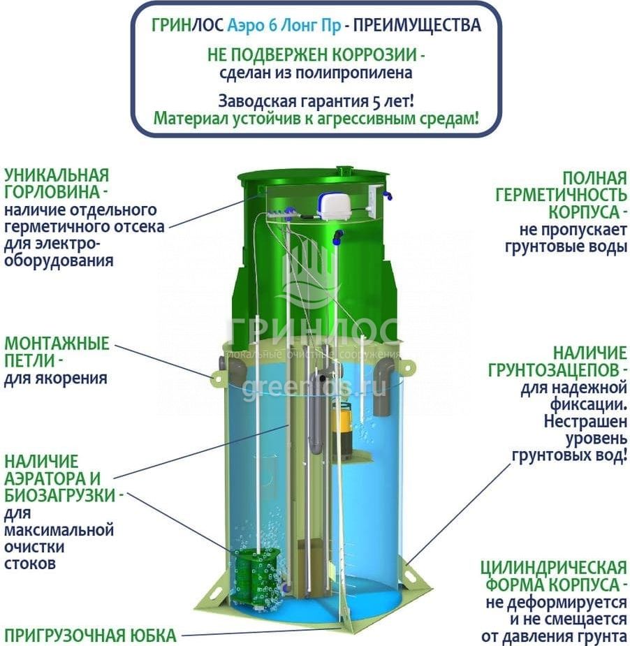 Модификации септика ГРИНЛОС Аэро 6 Пр Лонг