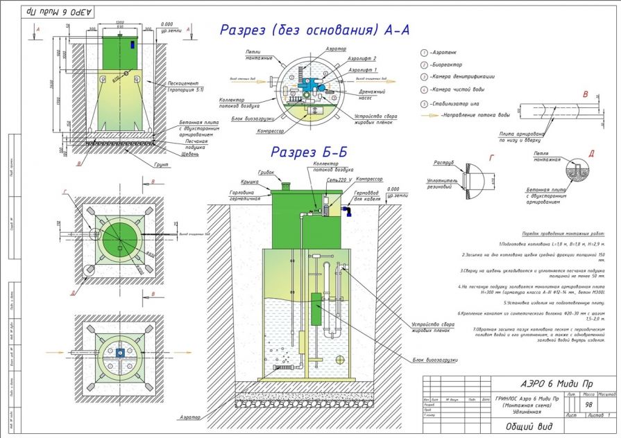 Монтаж септика ГРИНЛОС Аэро 6 Пр Миди