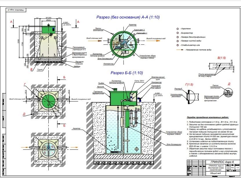 Монтаж септика ГРИНЛОС Аэро 6