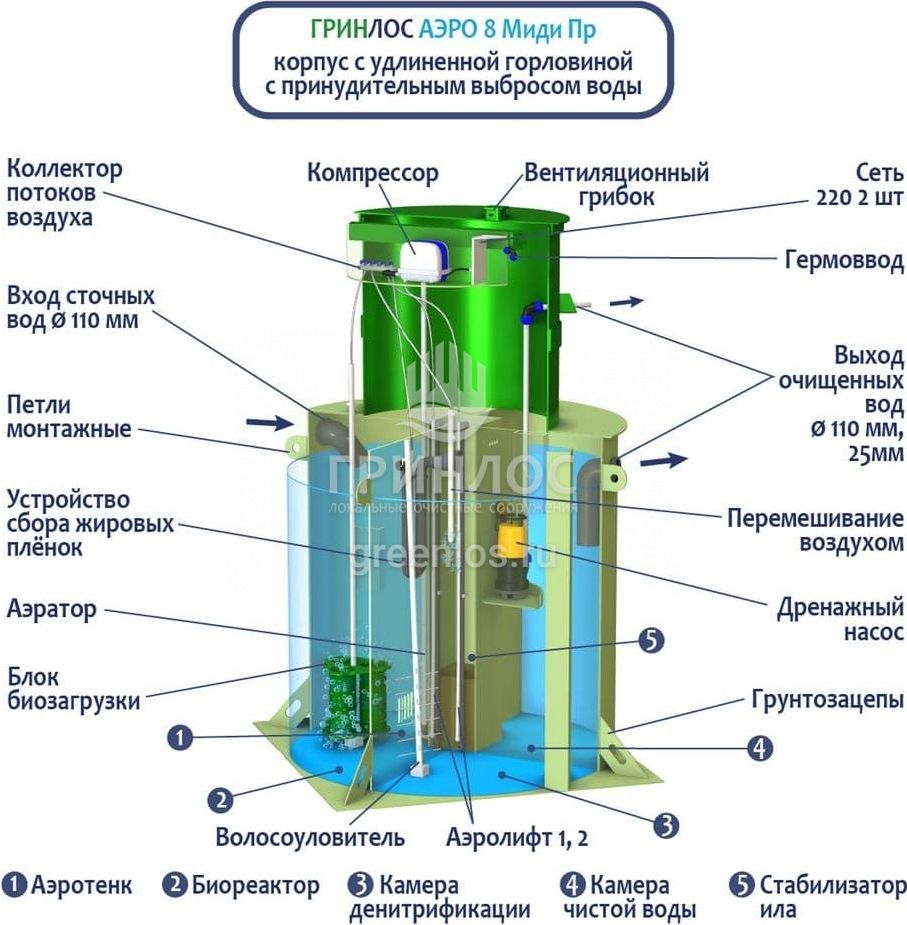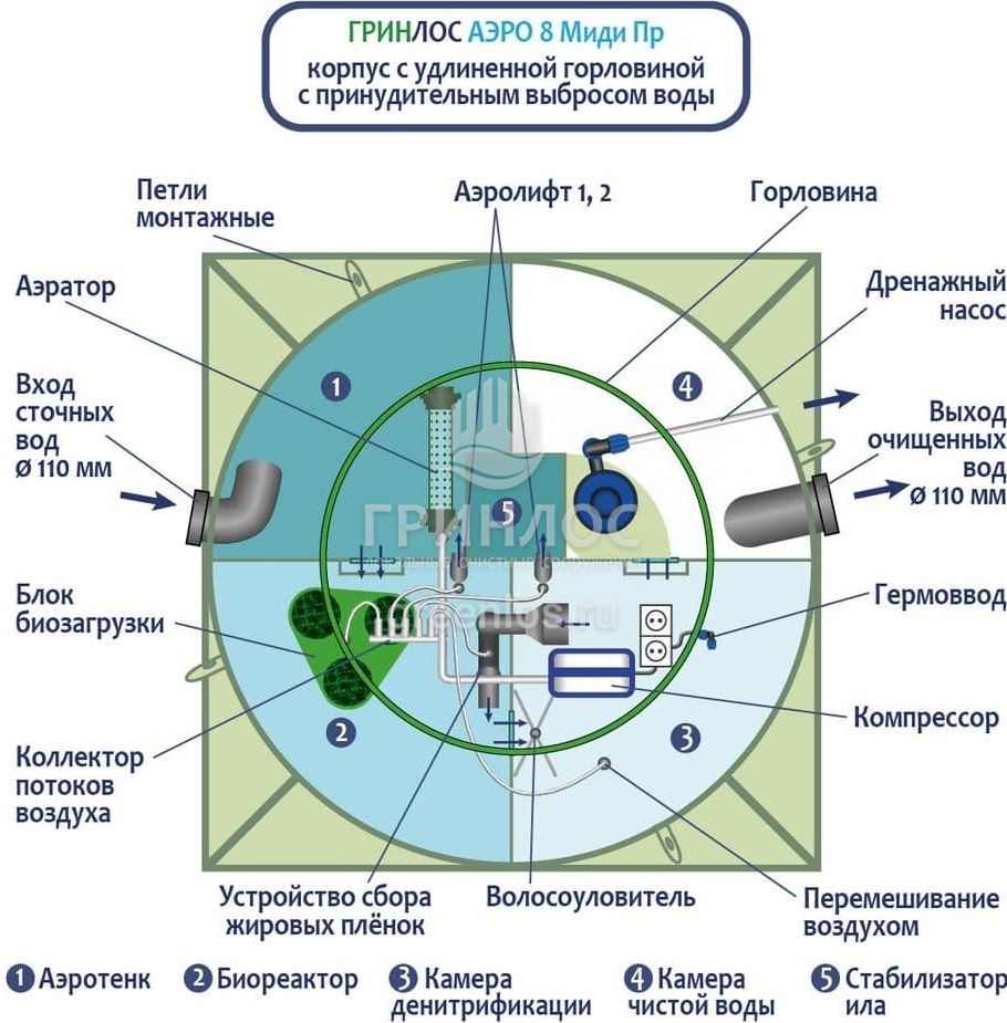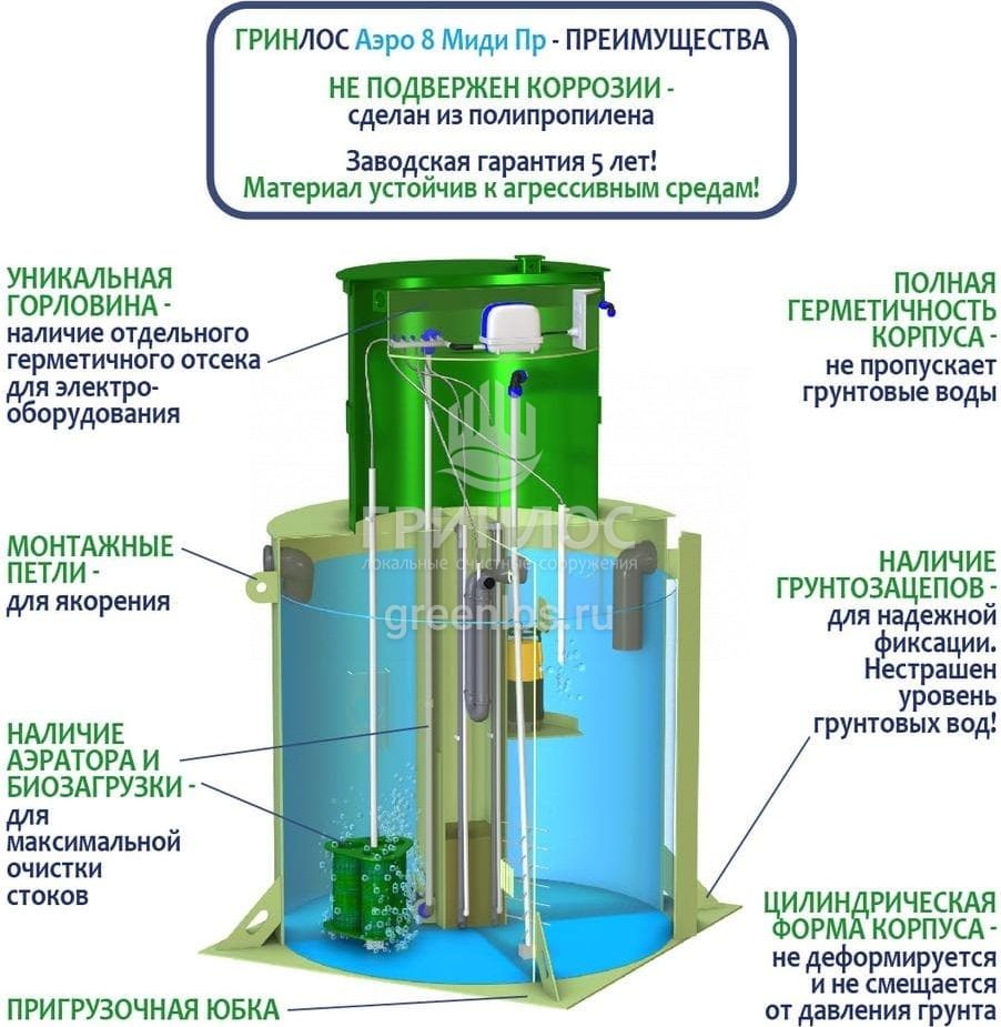 Модификации септика ГРИНЛОС Аэро 8 Пр Миди