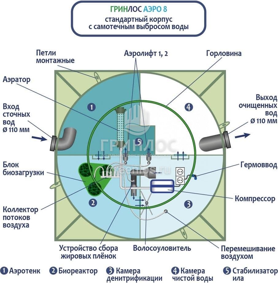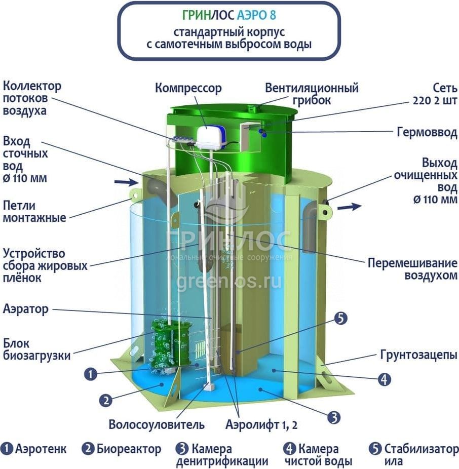 Отличительными особенностями септика ГРИНЛОС Аэро 8 являются: