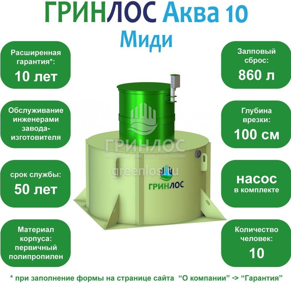 Модификации септика ГРИНЛОС Аква 10 Миди