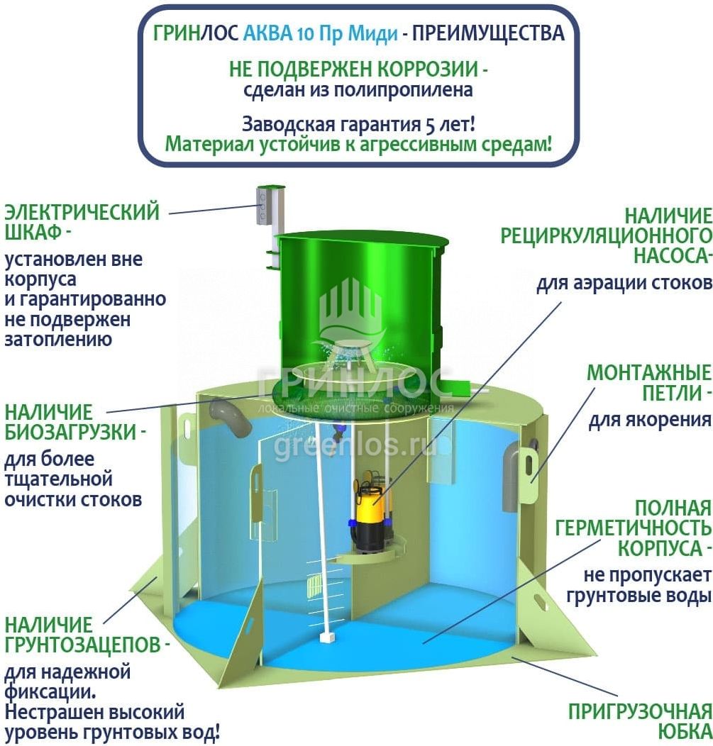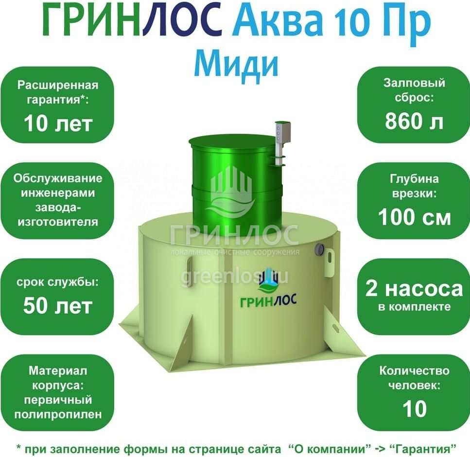 Модификации септика ГРИНЛОС Аква 10 Пр Миди
