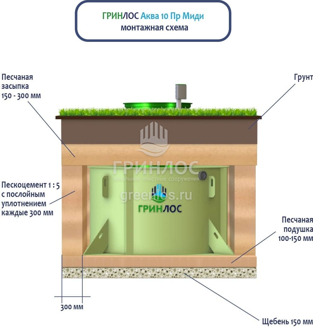 Монтаж септика ГРИНЛОС Аква 10 Пр Миди