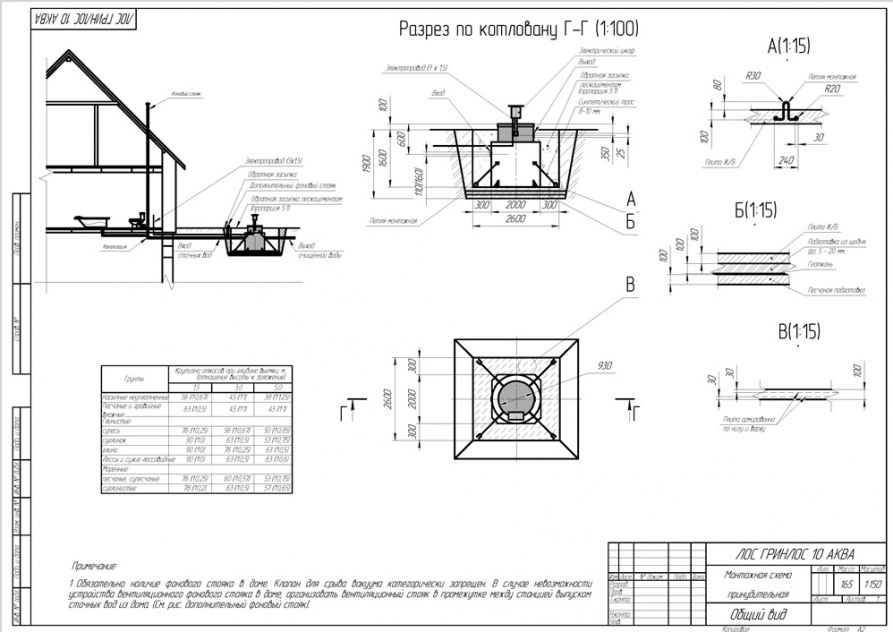 Целесообразно доверить выбор и монтаж оборудования специализированной компании. Перед непосредственным монтажом Оборудования специалисты осуществляют подготовку котлована. Его размеры определяются конструктивными особенностями выбранной модели оборудования. Ознакомиться с данными параметрами можно в приложении к ПС. По боковым стенкам корпуса должно быть сохранено свободное расстояние до грунта не менее 250 мм. Дно котлована нуждается в более тщательной подготовке. Его подвергают выравниванию с последующей засыпкой слоем песка, обладающим толщиной в пределах 10-15 см. Пазухи котлована подвергают обратной засыпке при помощи песка, который послойно поливают водой. Прежде чем приступить к аналогичным работам, емкость оборудования на четверть заполняют водой. Впоследствии количество воды внутри емкости увеличивают соразмерно уровню засыпки песком наружных стенок. Каждые 200 мм песка подвергаются ручному уплотнению.
