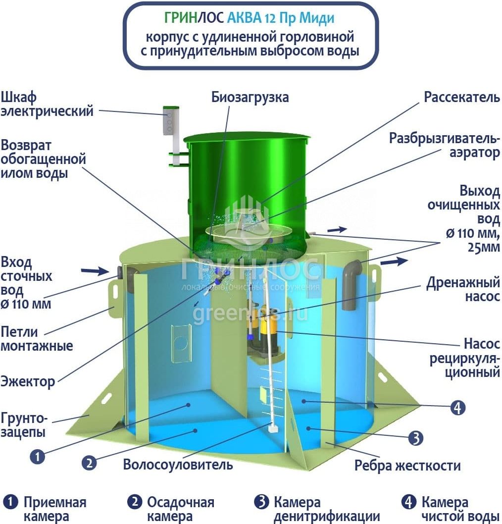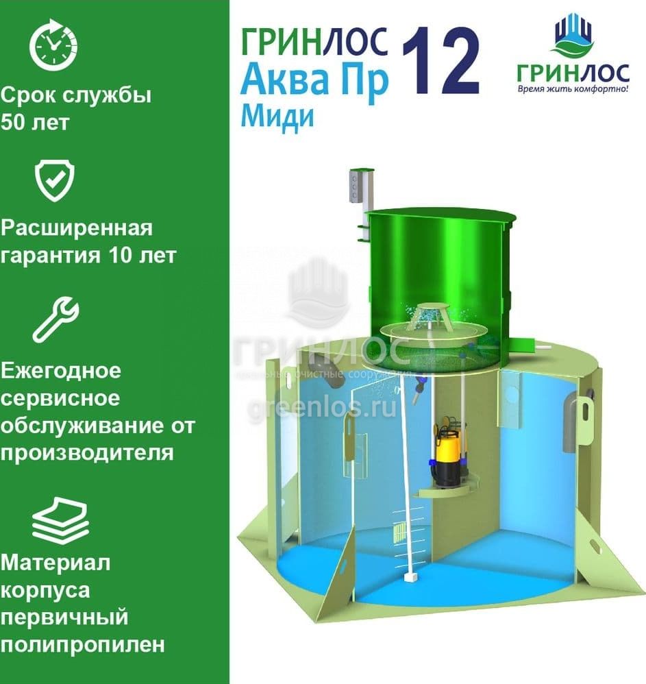 Модификации септика ГРИНЛОС Аква 12 Пр Миди