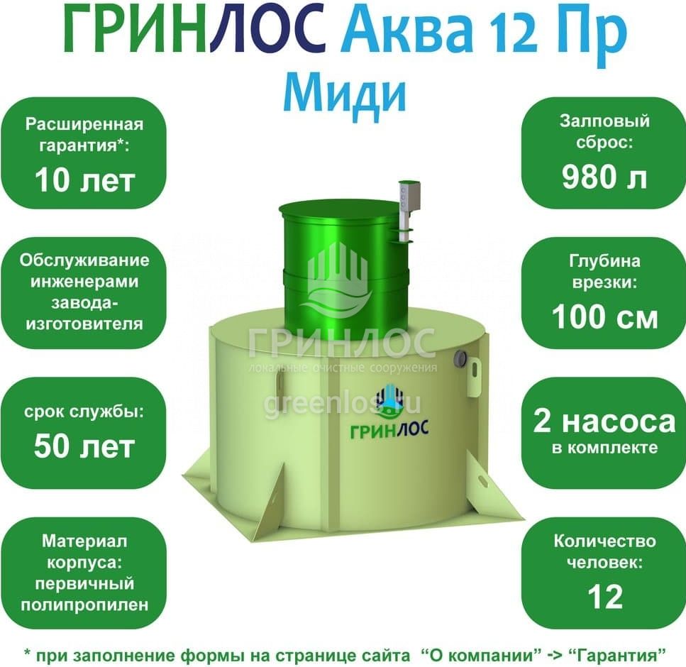Септик ГРИНЛОС Аква 12 Пр Миди