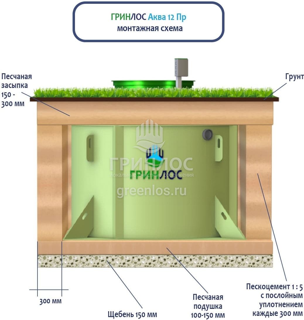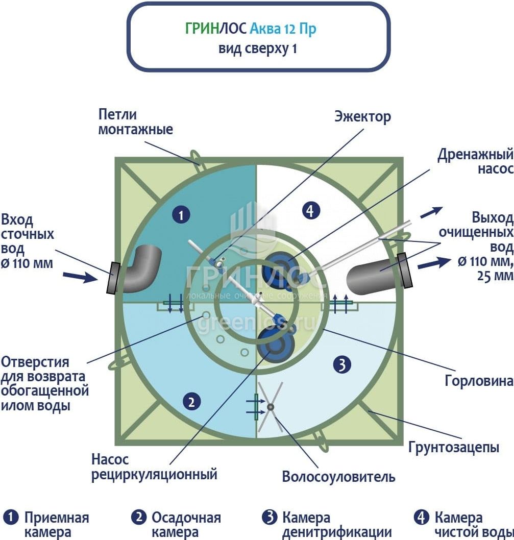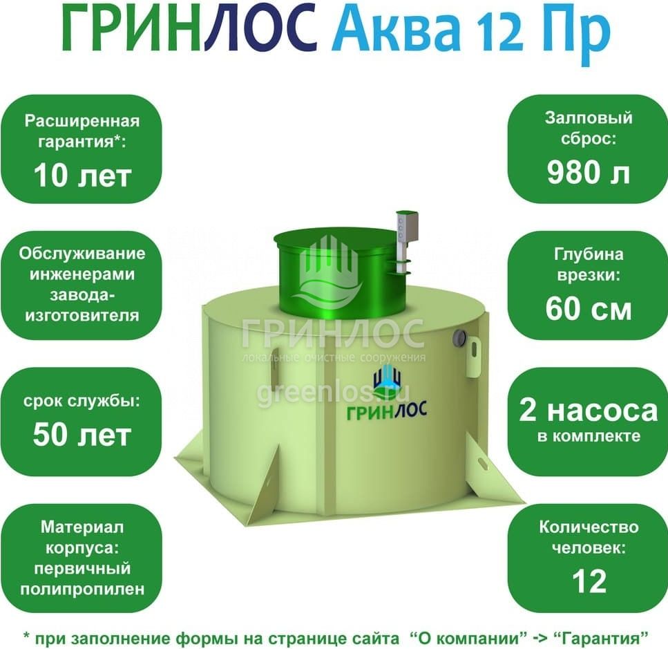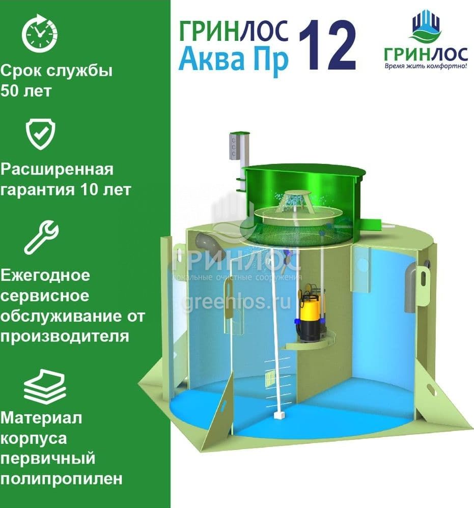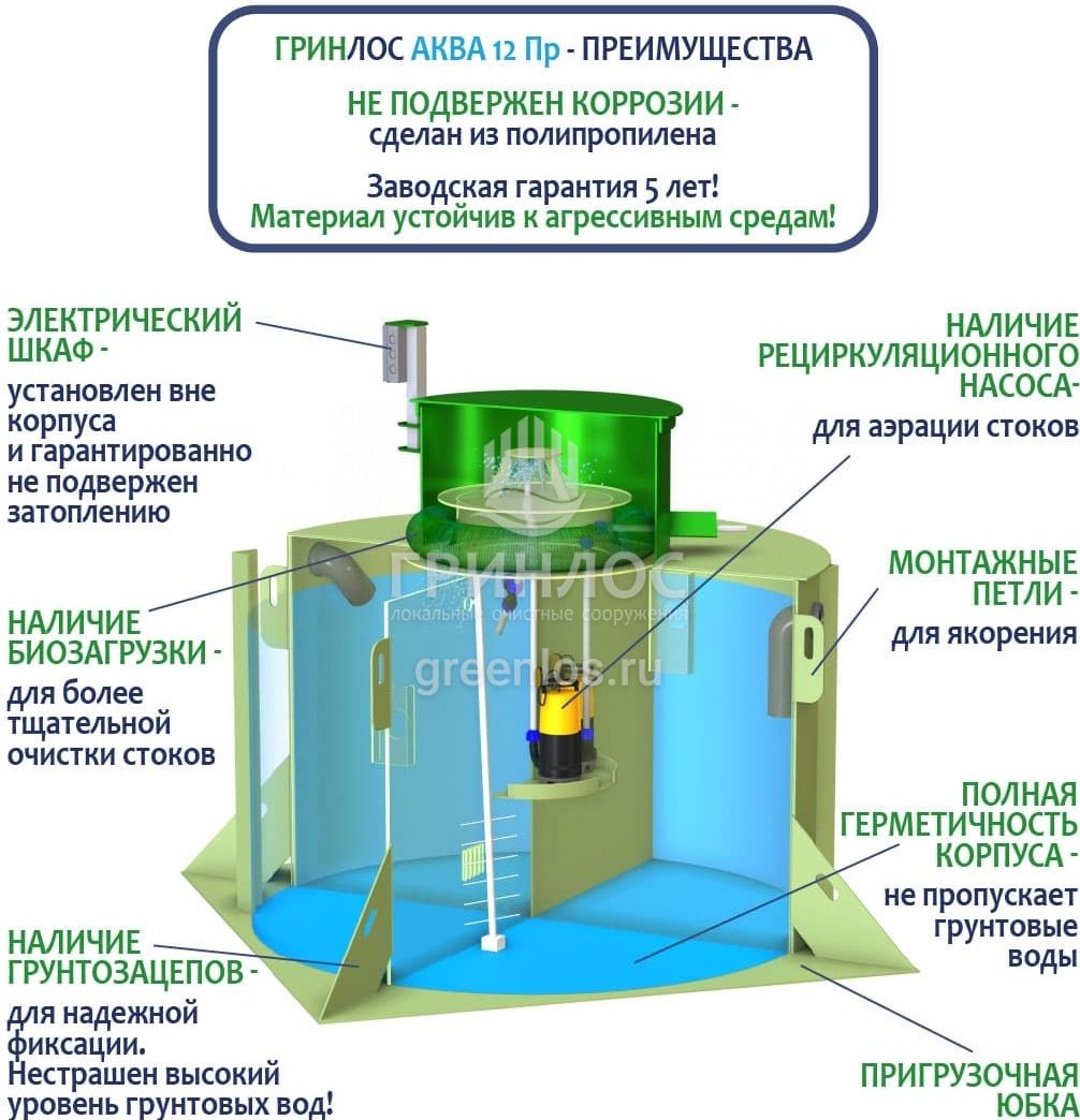 Отличительными особенностями септика ГРИНЛОС Аква 12 Пр являются: