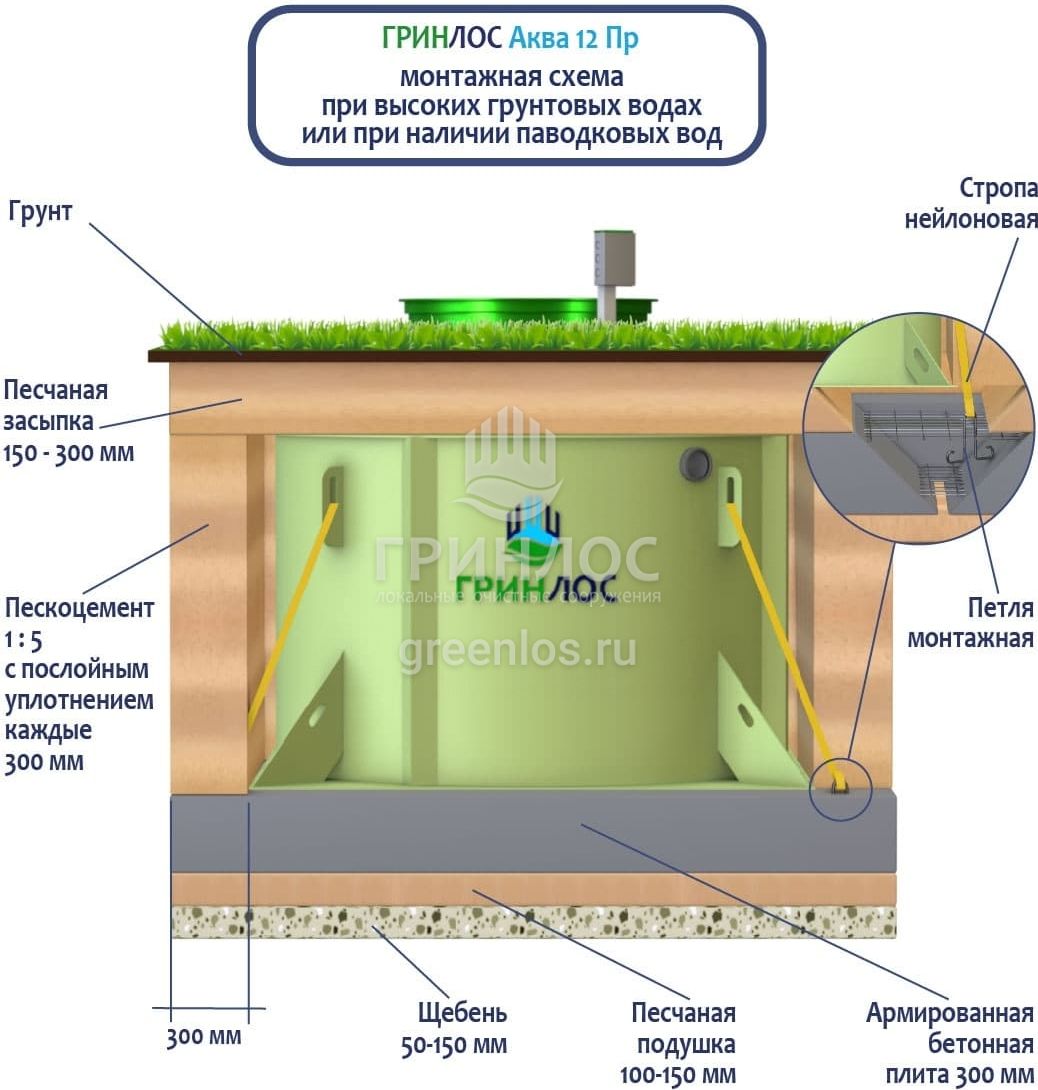 Станции очистки ГРИНЛОС обладают надежными грунтозацепами, действительно предотвращающими всплытие оборудования на обводненных участках.