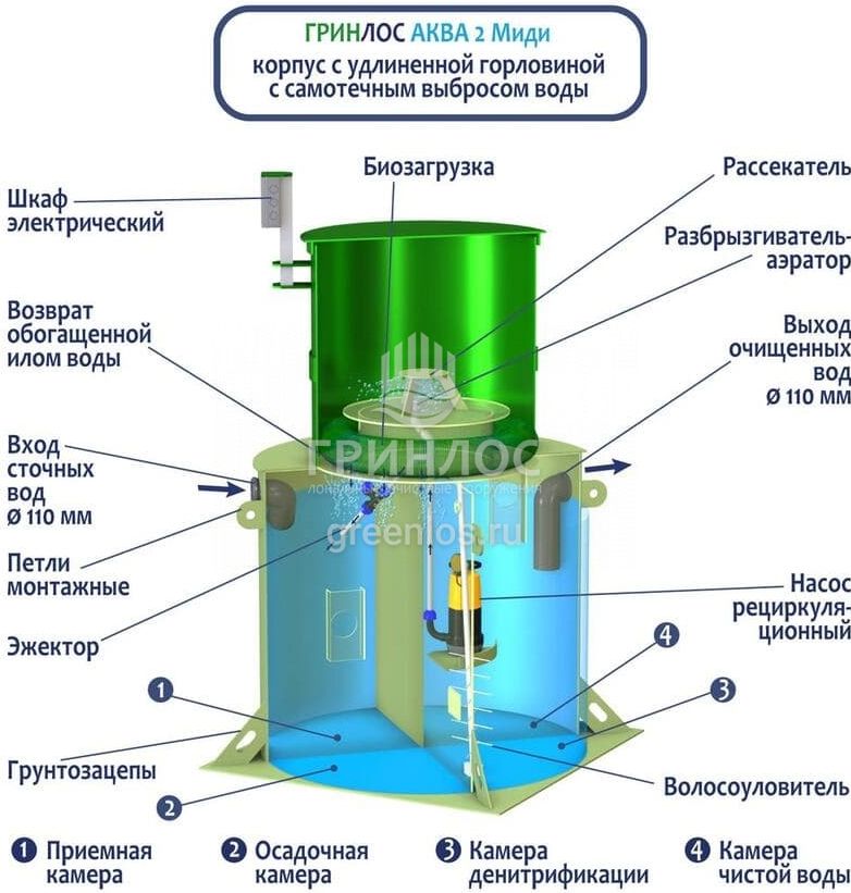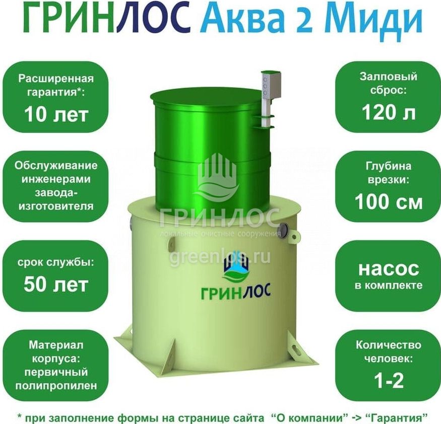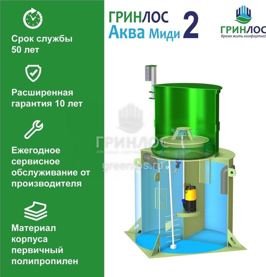 Отличительными особенностями септика ГРИНЛОС Аква 2 Миди являются: