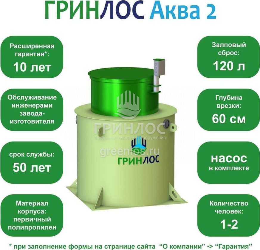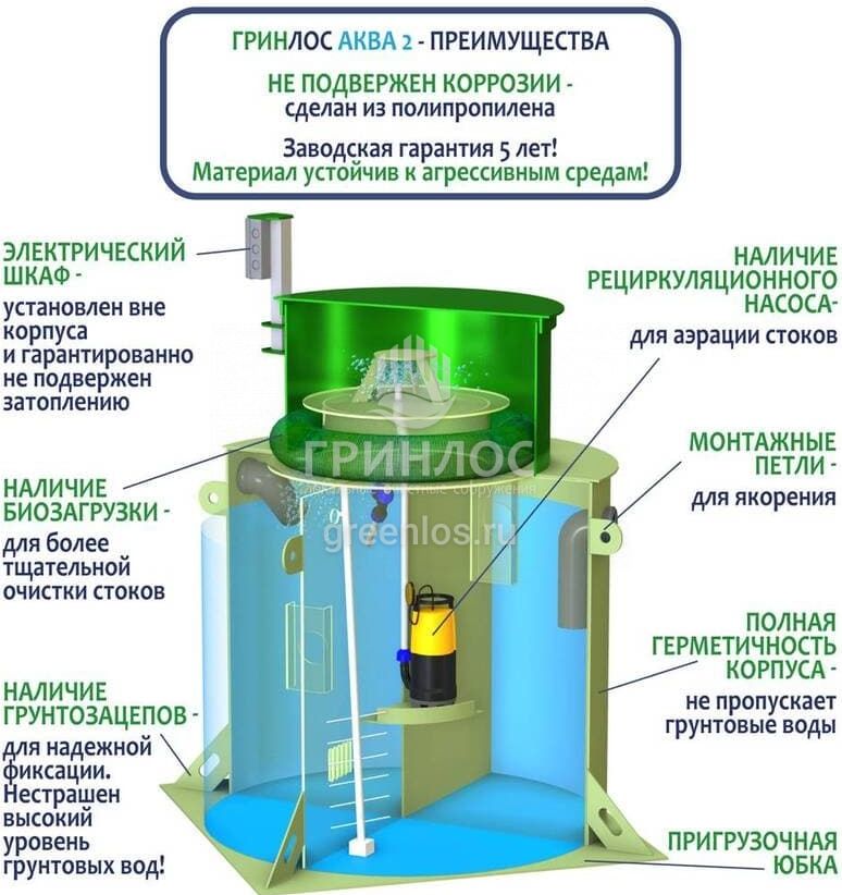 Отличительными особенностями септика ГРИНЛОС Аква 2 являются: