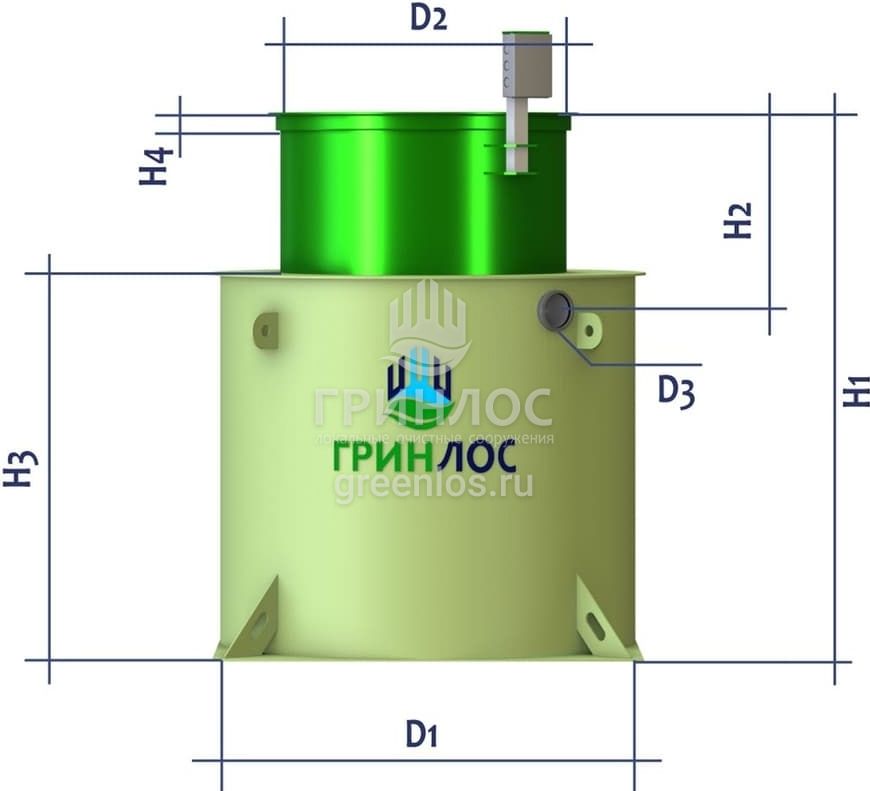 - Высота корпуса — 1500 мм. Станция подходит для монтажа во все виды почв: песок, глина, суглинок, грунты с высоким уровнем грунтовых вод.