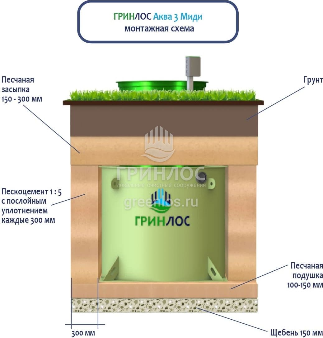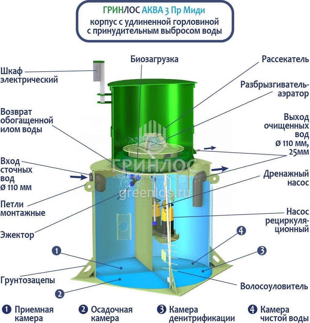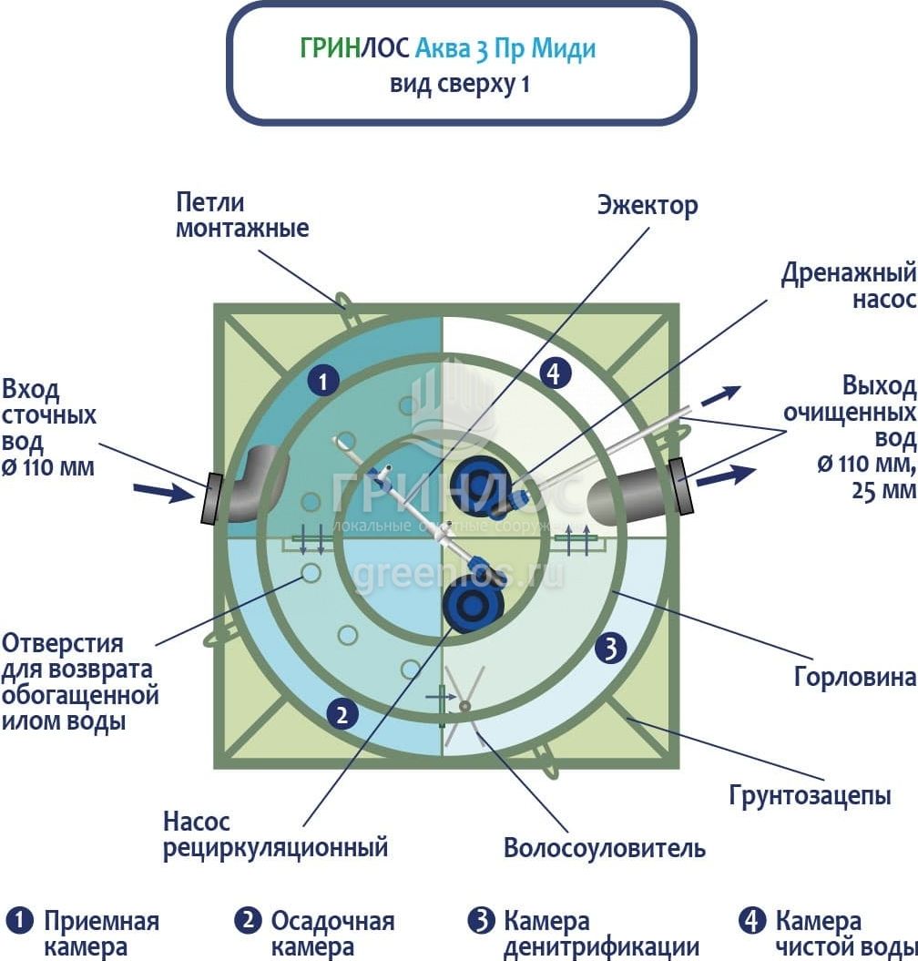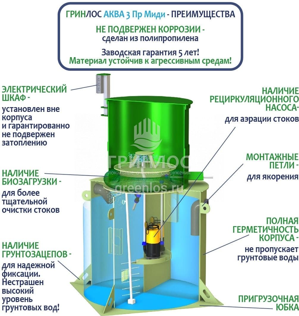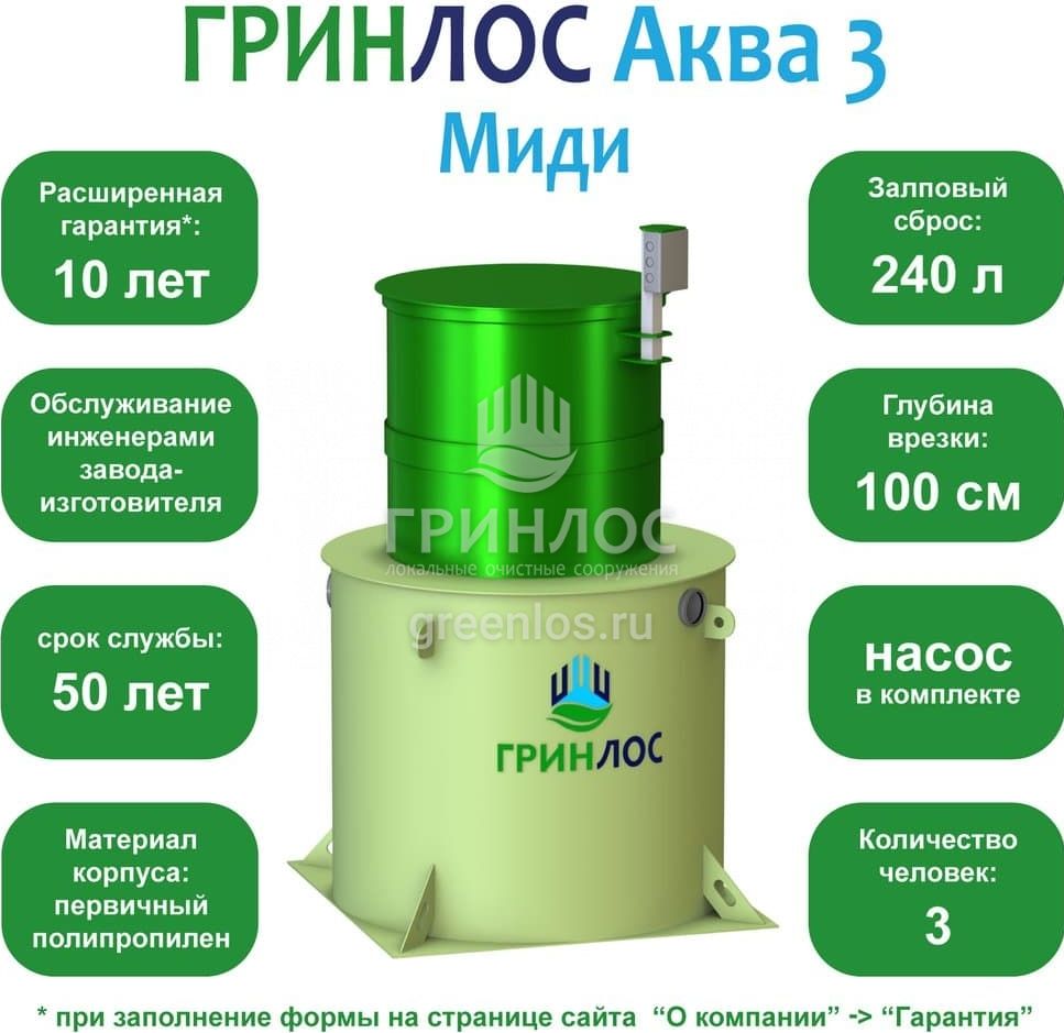 Модификации септика ГРИНЛОС Аква 3 Миди