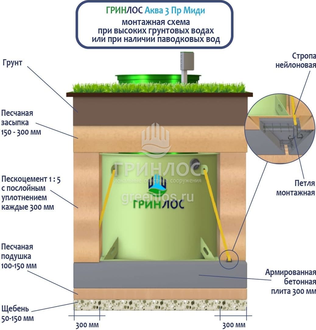 Монтаж септика ГРИНЛОС Аква 3 Миди
