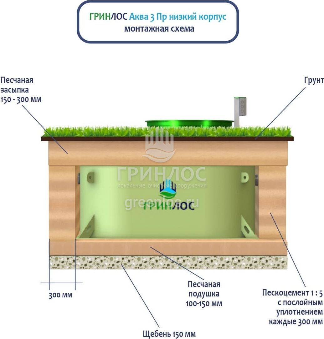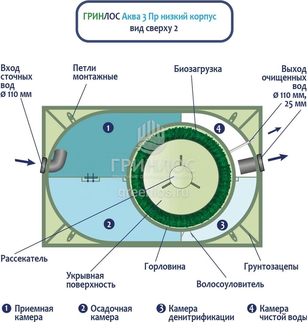 Отличительными особенностями септика ГРИНЛОС Аква 3 низкий корпус Пр являются: