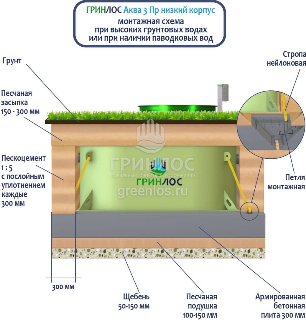 Монтаж септика ГРИНЛОС Аква 3 низкий корпус Пр