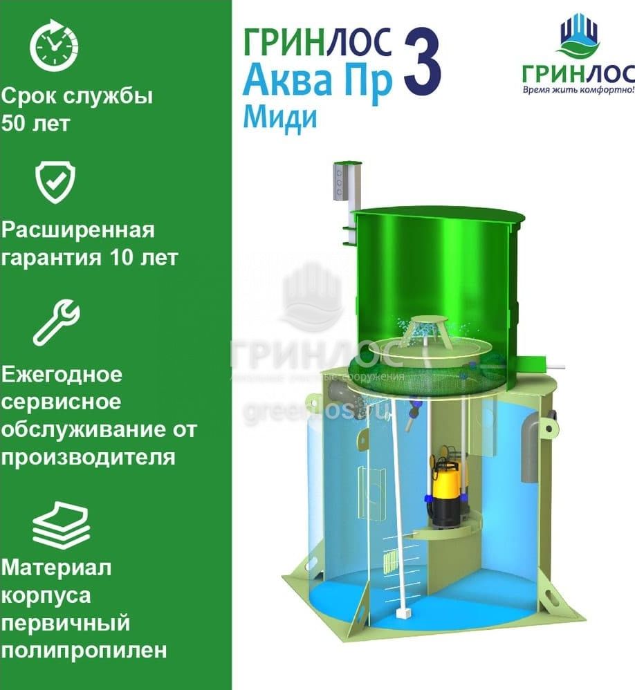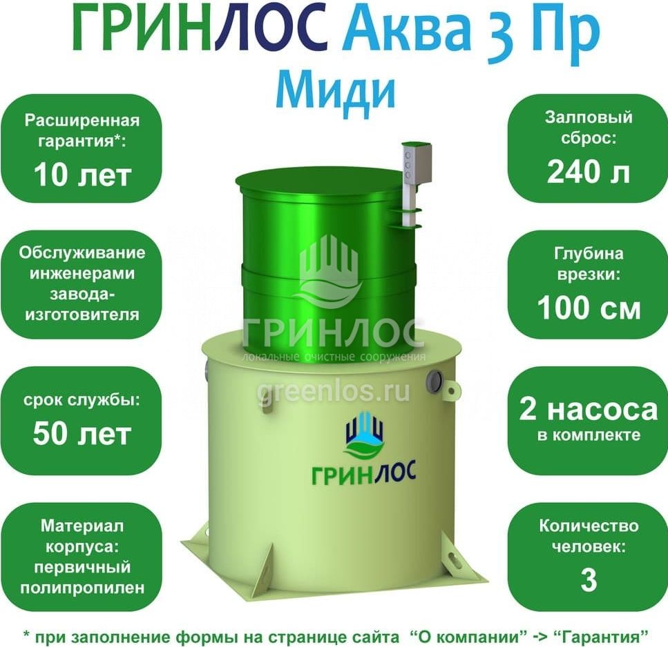 Модификации септика ГРИНЛОС Аква 3 Пр Миди