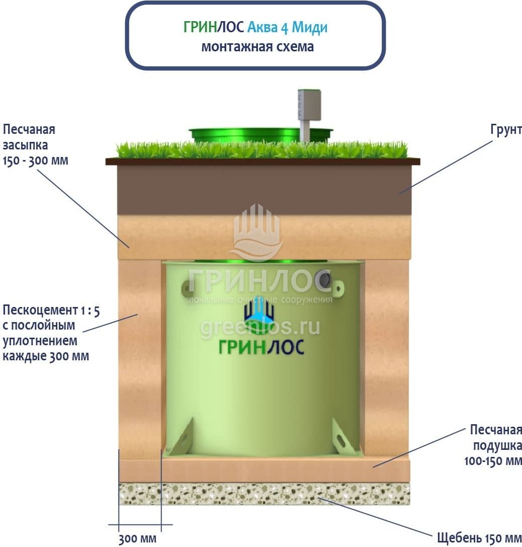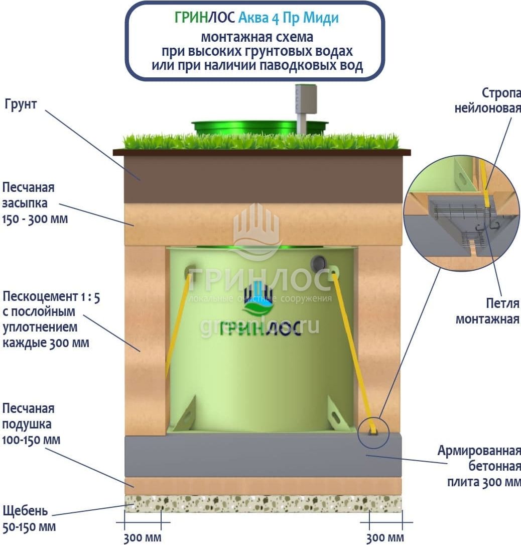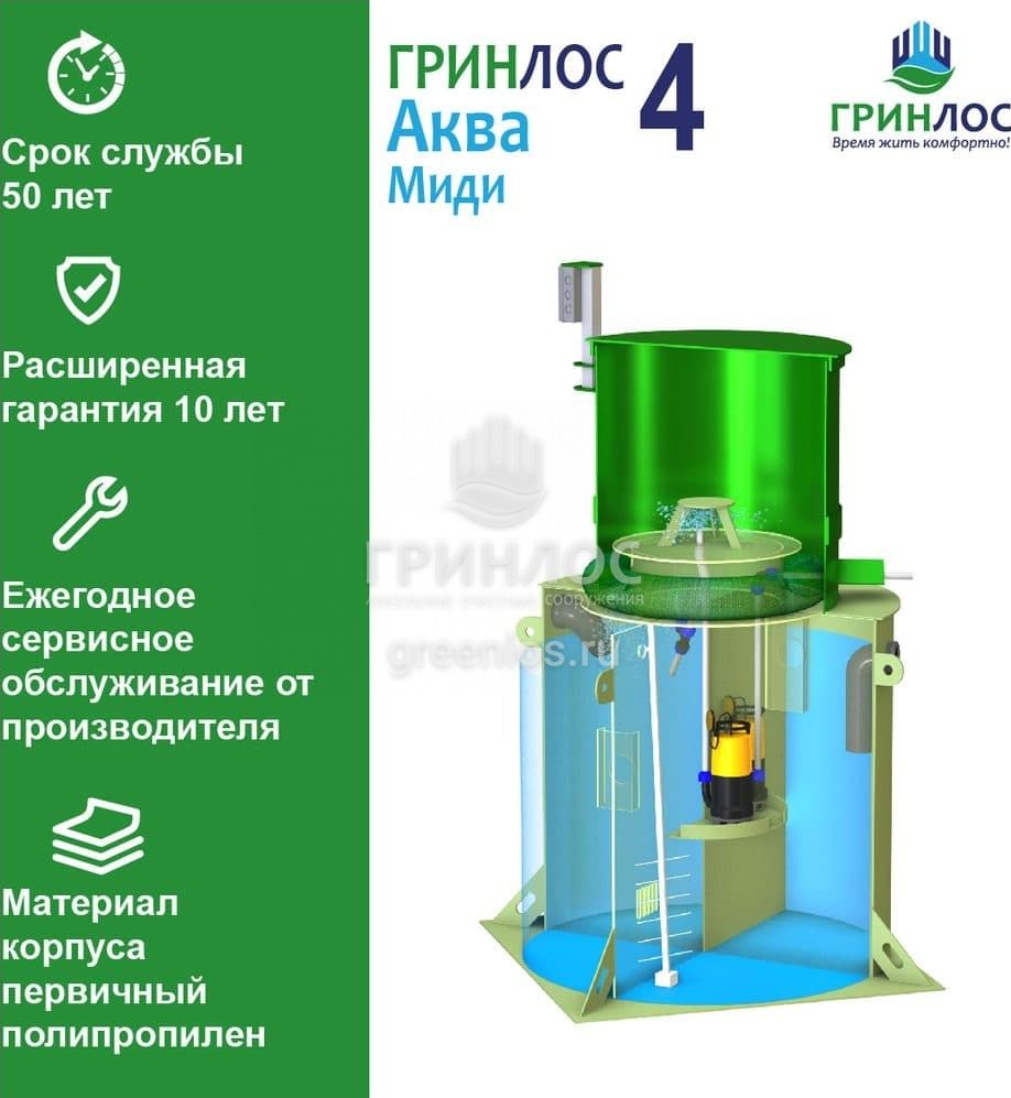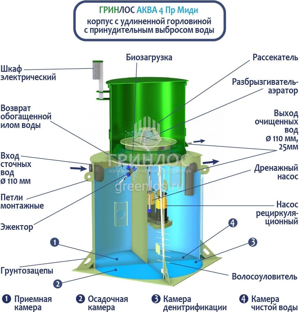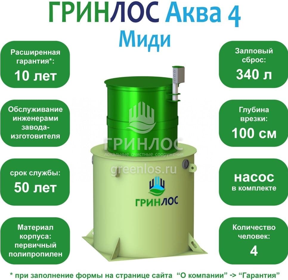 Модификации септика ГРИНЛОС Аква 4 Миди