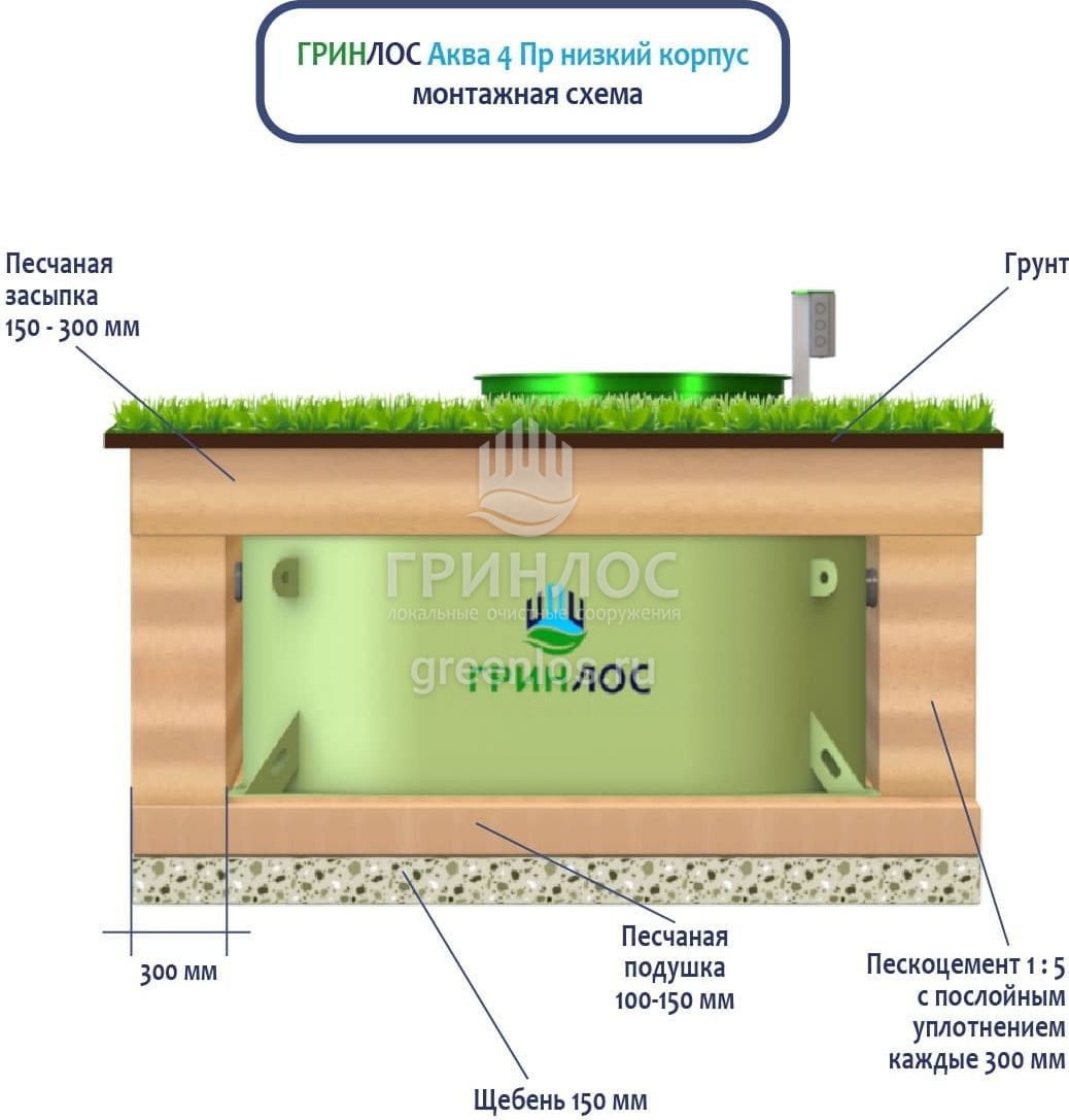 Монтаж септика ГРИНЛОС Аква 4 низкий корпус Пр