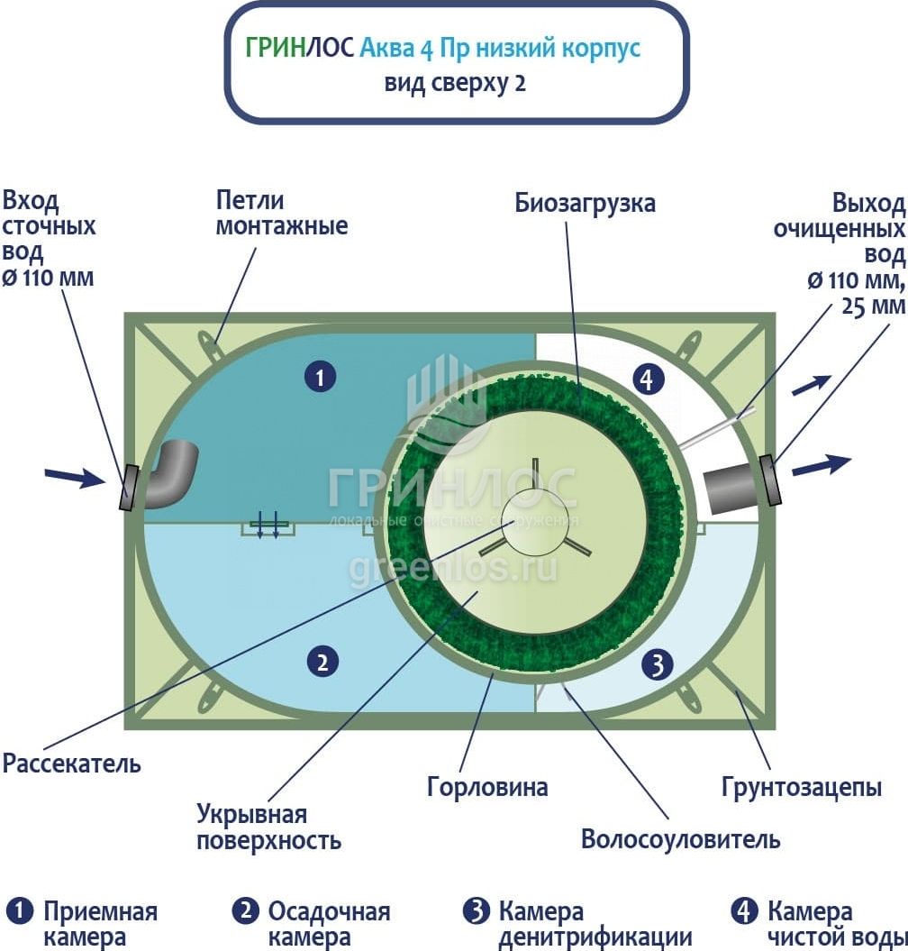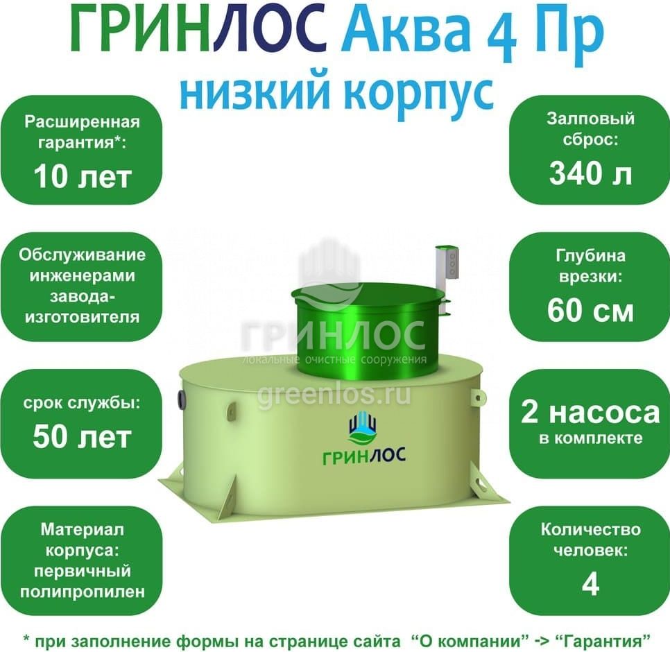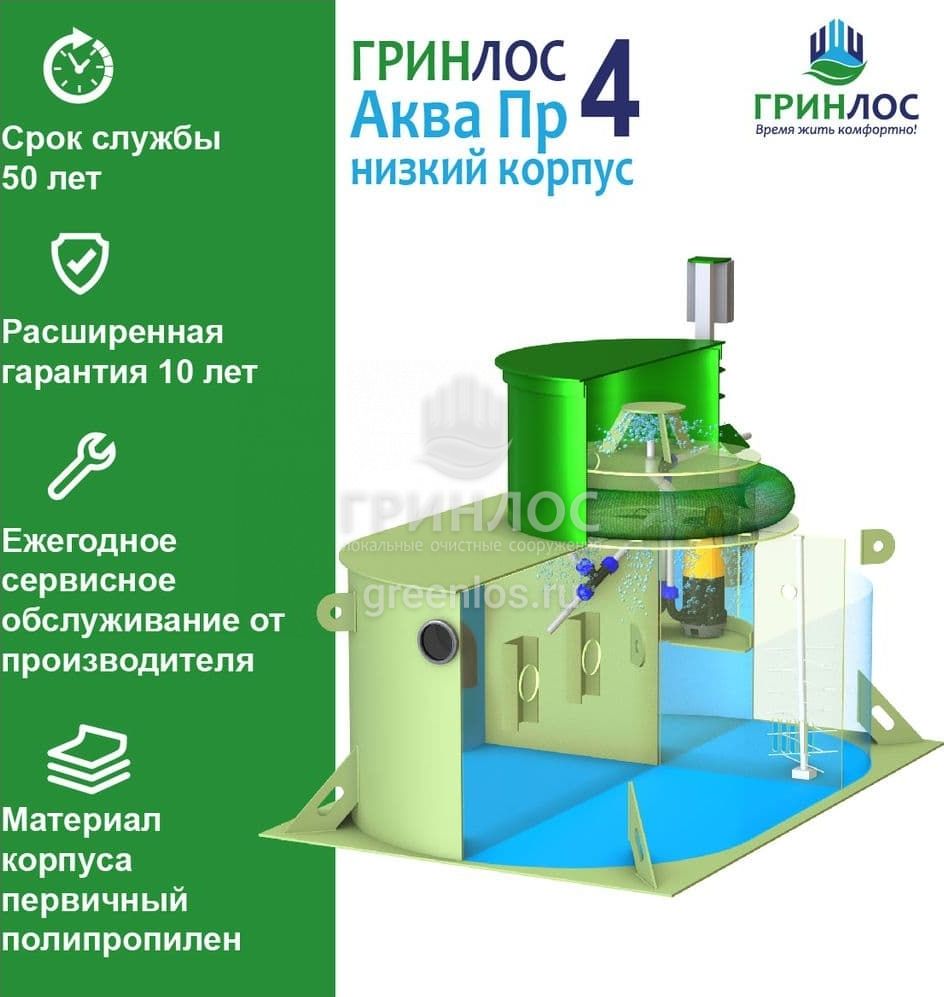 Отличительными особенностями септика ГРИНЛОС Аква 4 низкий корпус Пр являются: