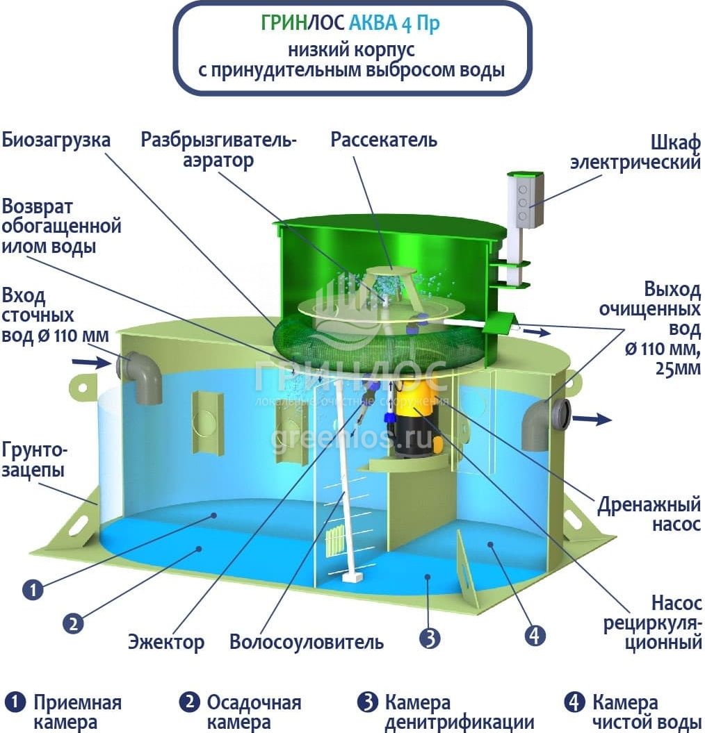 Модификации септика ГРИНЛОС Аква 4 низкий корпус Пр