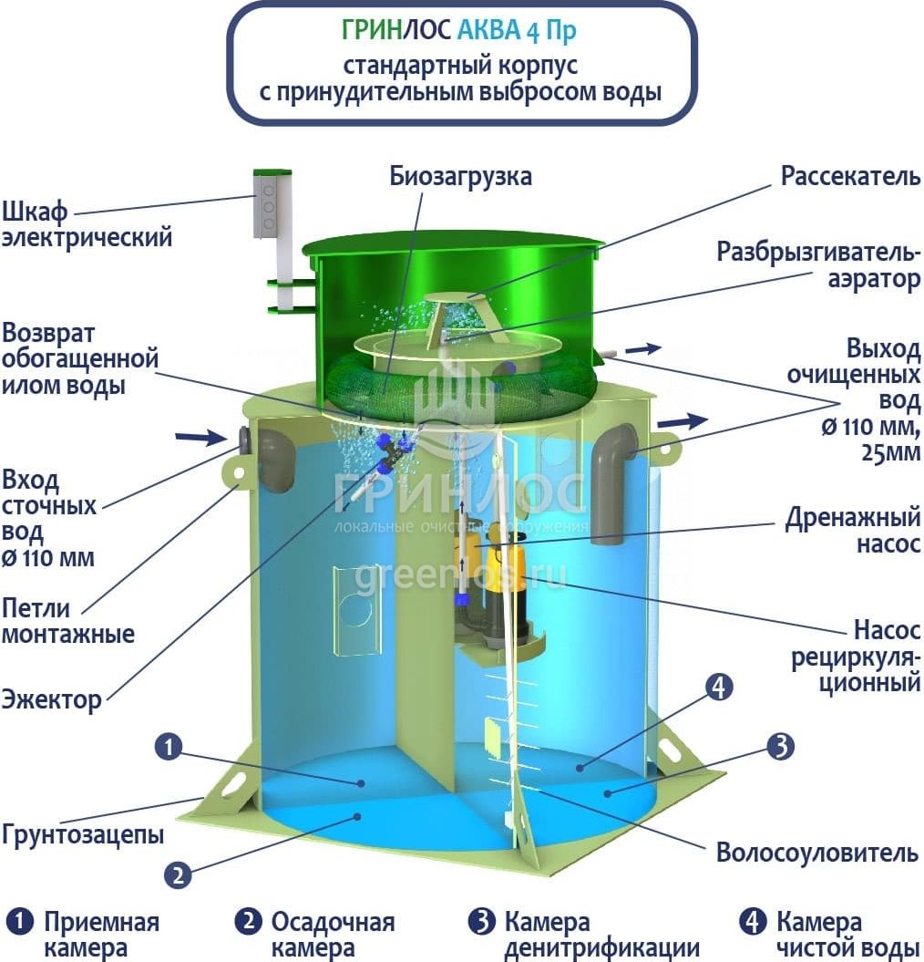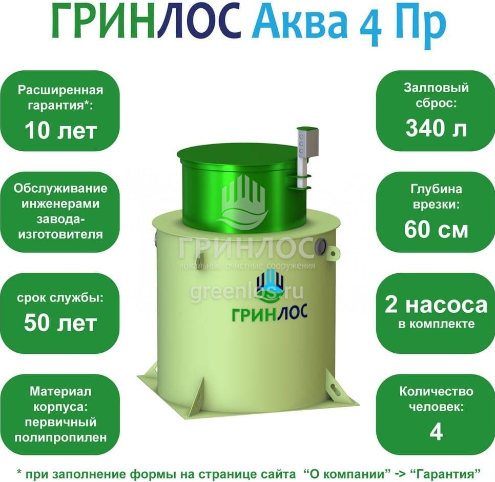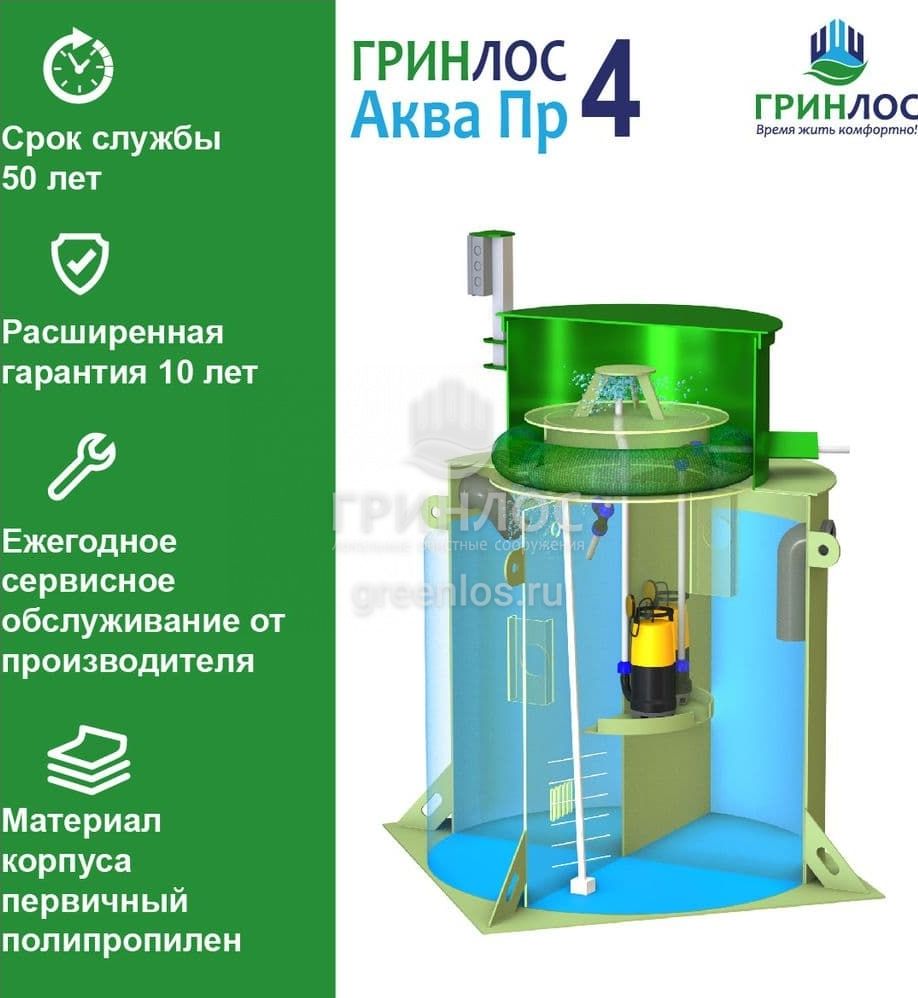 Отличительными особенностями септика ГРИНЛОС Аква 4 Пр являются: