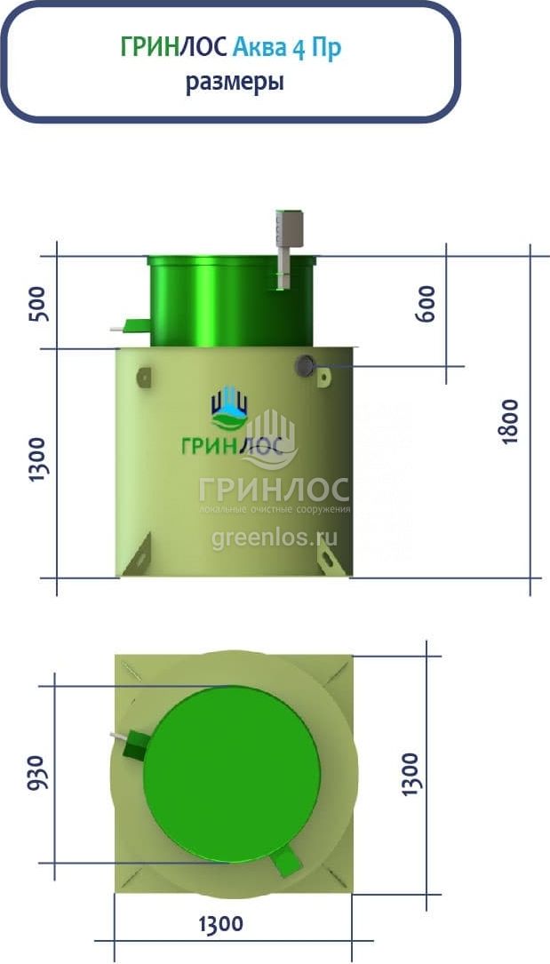 ГРИНЛОС Аква 4 Пр — это септик, который оснащен насосом. Обладает объемом залпового сброса 340 л и производительностью 0,8 м3/сутки, что делает его подходящим для домов, в которых число жильцов не превышает 4 условных пользователей. Оснащен фильтром грубой очистки и двумя насосами на полке.
