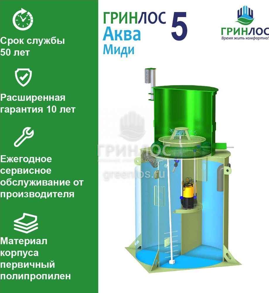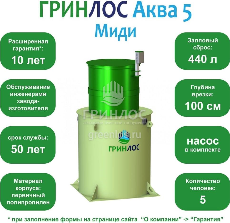 Модификации септика ГРИНЛОС Аква 5 Миди