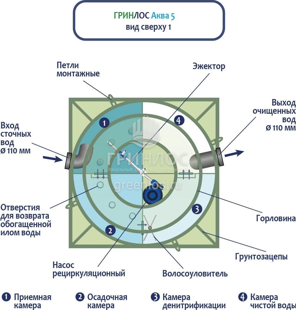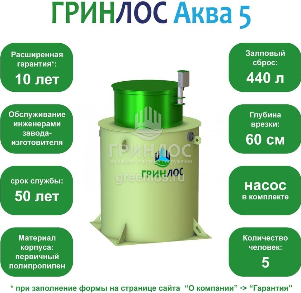 Отличительными особенностями септика ГРИНЛОС Аква 5 являются: