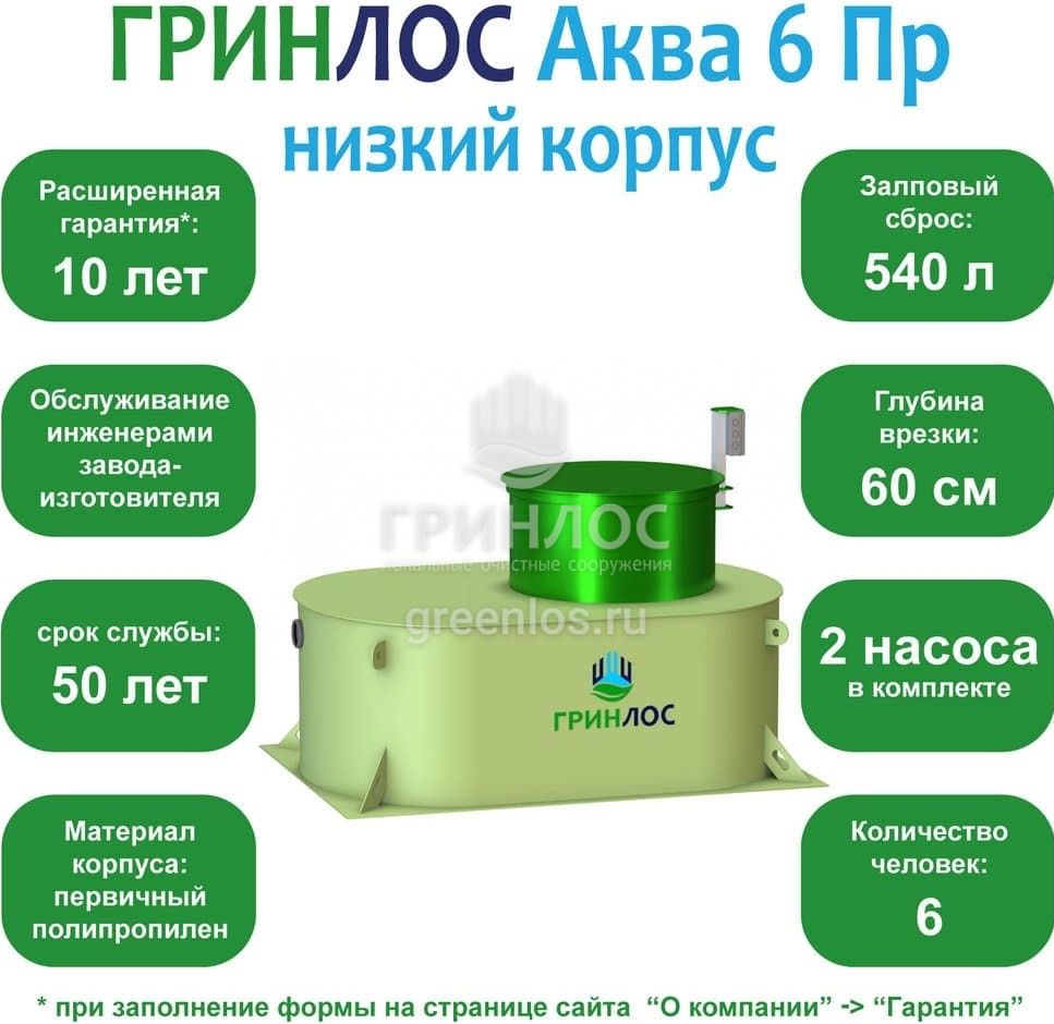 Отличительными особенностями септика ГРИНЛОС Аква 6 низкий корпус Пр являются: