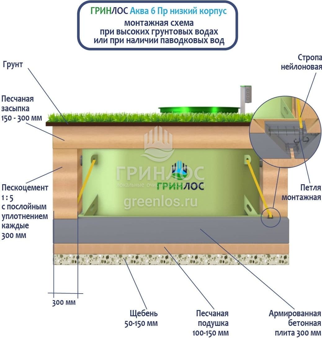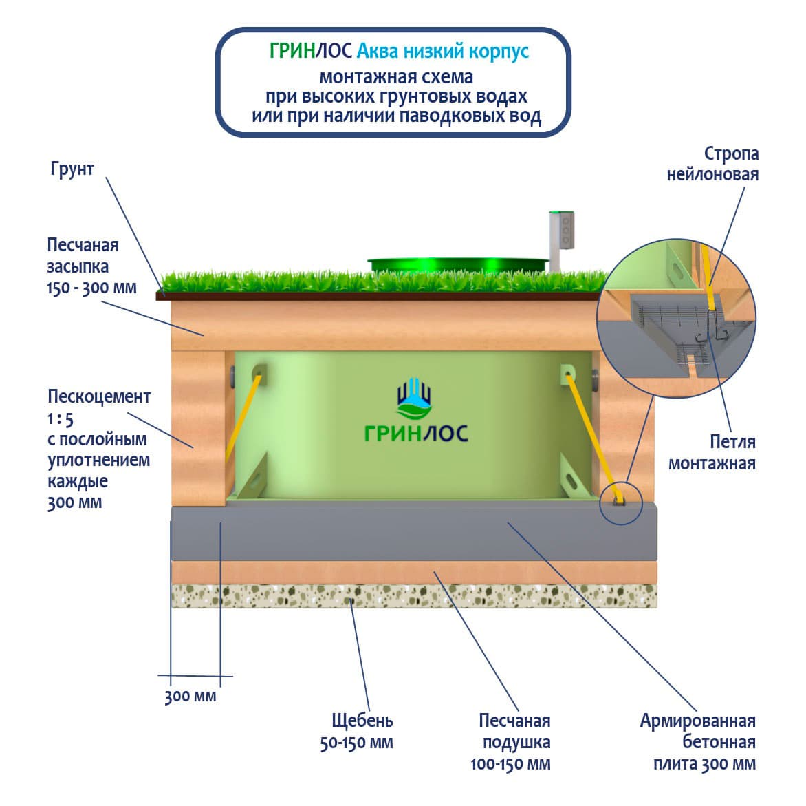 Монтаж септика ГРИНЛОС Аква 6 низкий корпус Пр