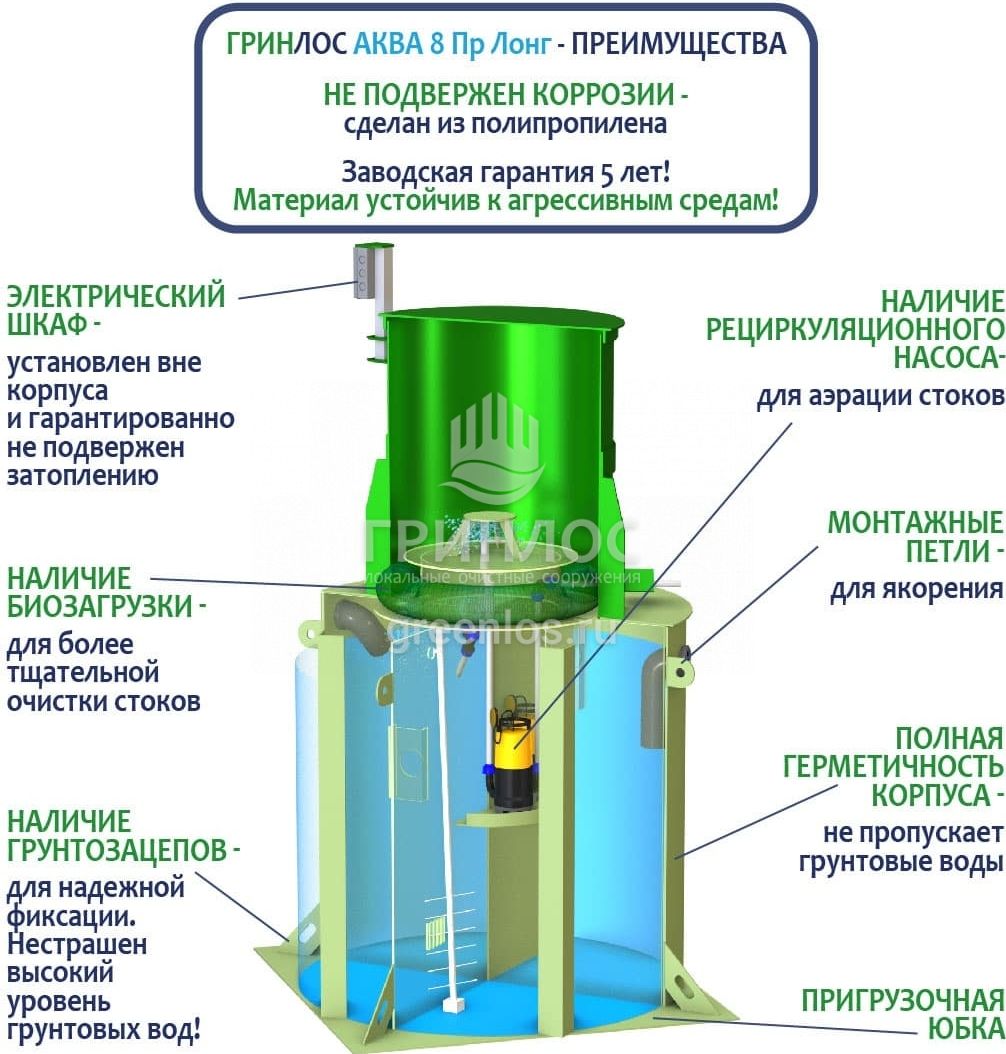 Модификации септика ГРИНЛОС Аква 8 Лонг