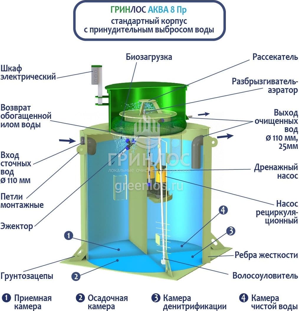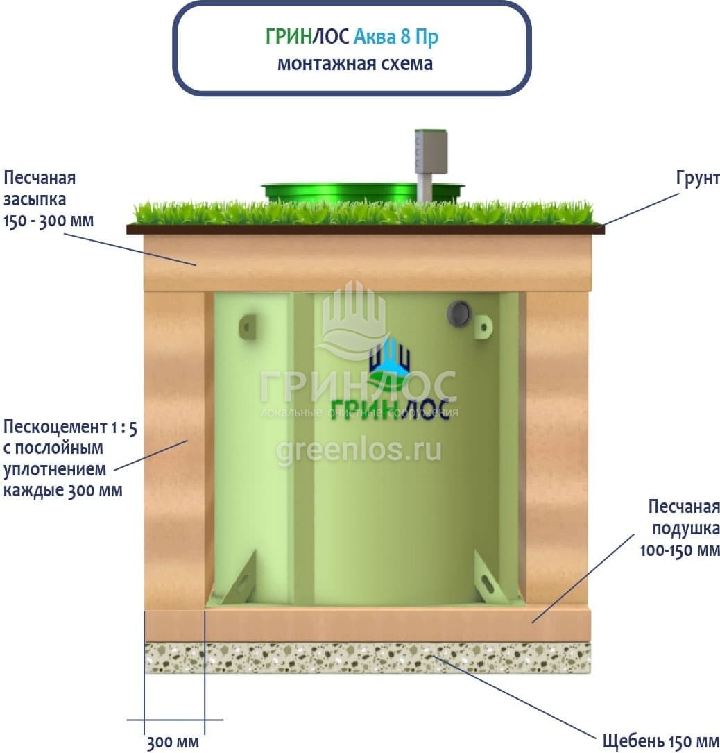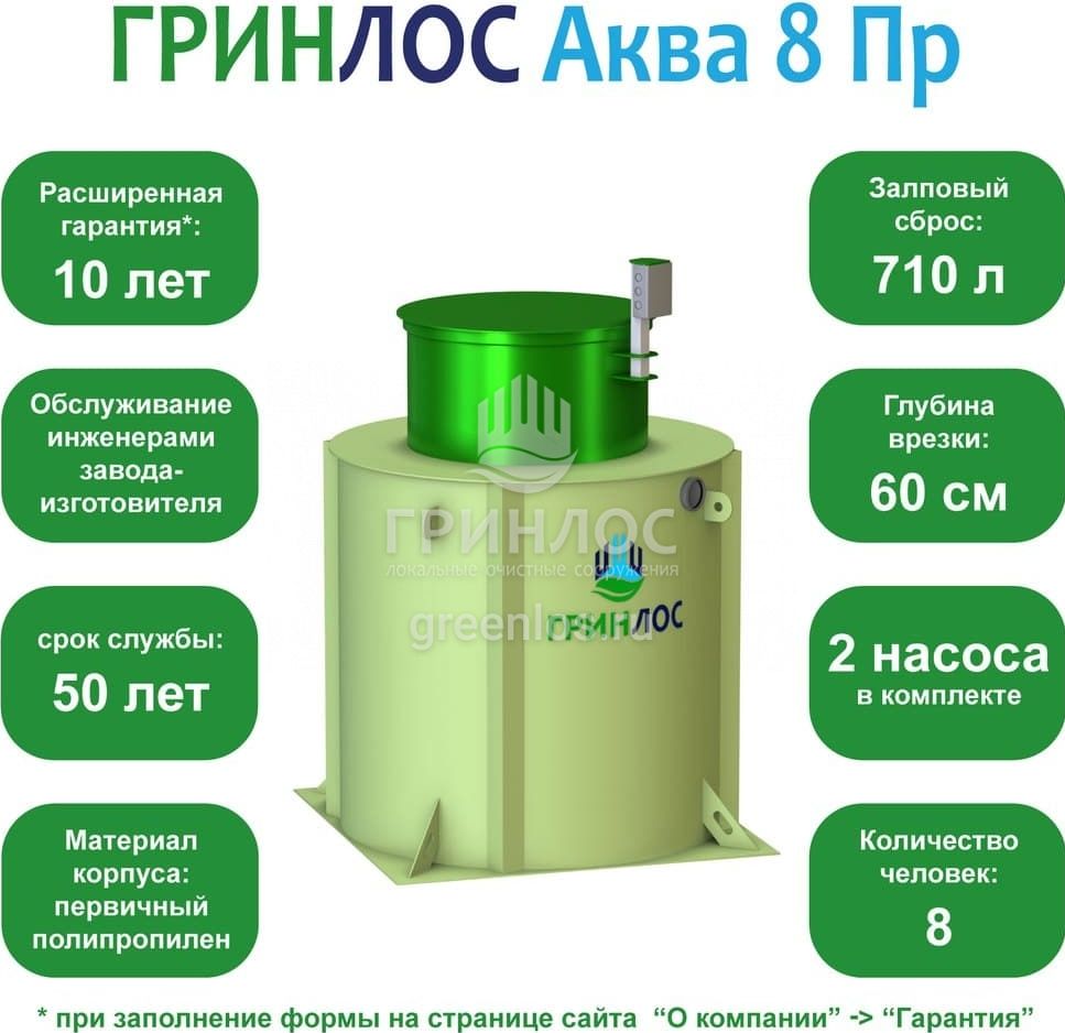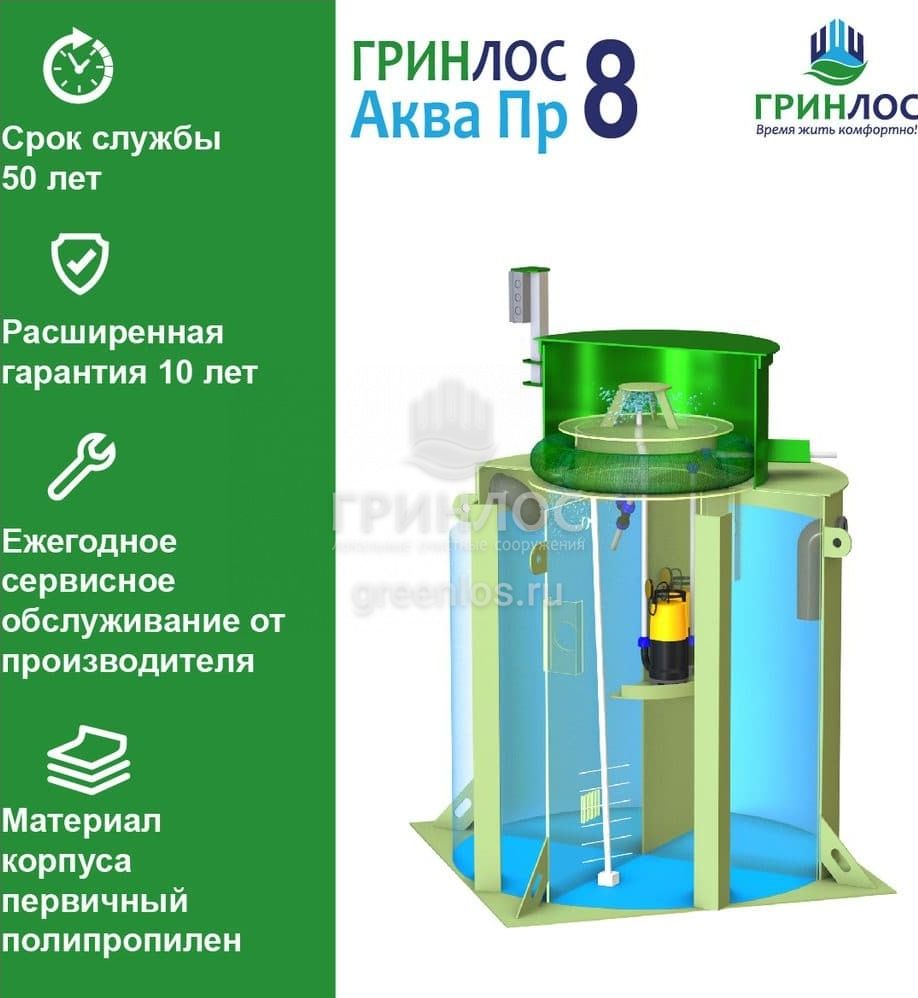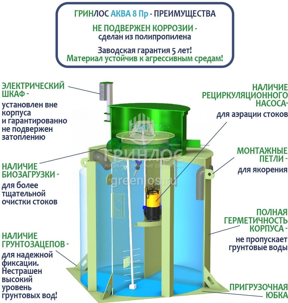 Отличительными особенностями септика ГРИНЛОС Аква 8 Пр являются: