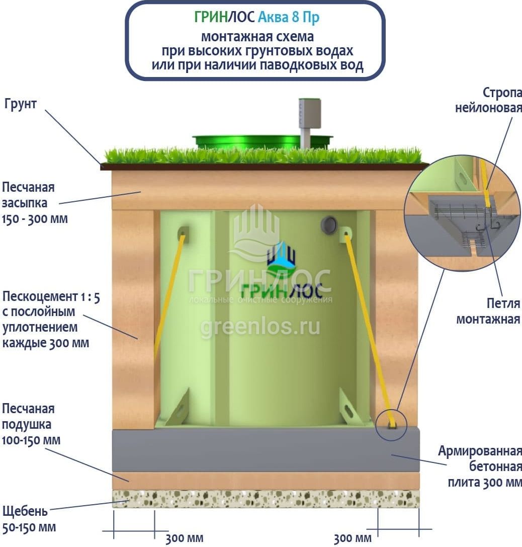 Станции очистки ГРИНЛОС обладают надежными грунтозацепами, действительно предотвращающими всплытие оборудования на обводненных участках.