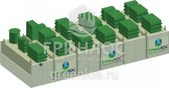 Модульная конструкция, включающая 6 блоков (5200*2000*2580 мм) с автоматизироанным управлением, легко масштабируется под нужды объекта и не требует постоянного вмешательства оператора.