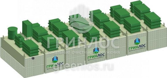 Модульная конструкция, включающая 7 блоков (5200*2000*2580 мм) с автоматизироанным управлением, легко масштабируется под нужды объекта и не требует постоянного вмешательства оператора.