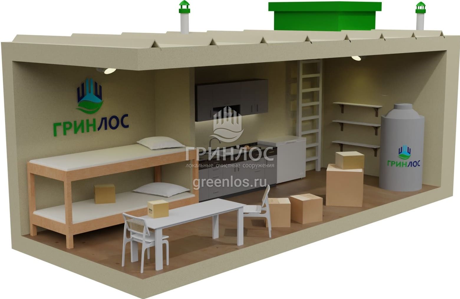 Любой бункер ГРИНЛОС — это изделие, проектируемое и выпускаемое по индивидуальному заказу. Бункер можно оснастить любым оборудованием для обеспечения жизнедеятельности по желанию заказчика.