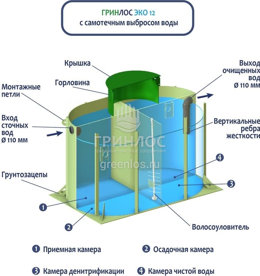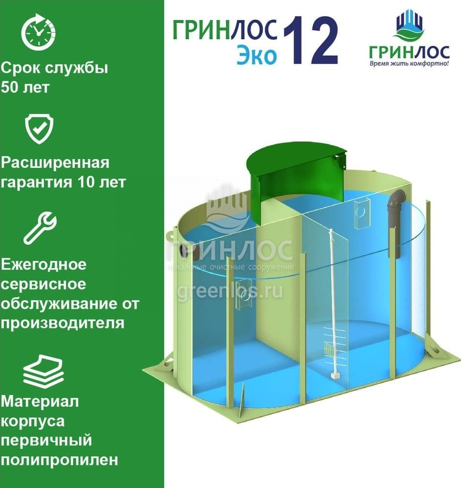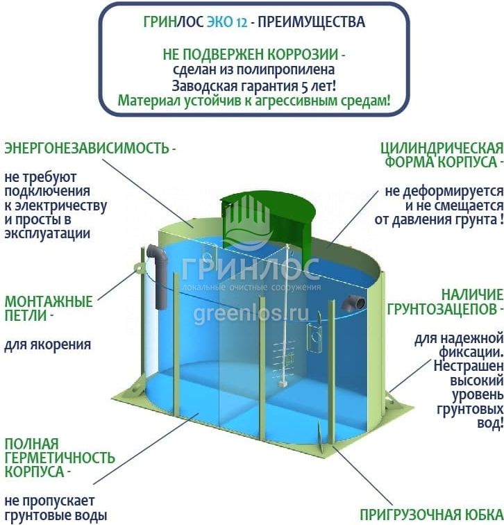 Отличительными особенностями септика ГРИНЛОС Эко 12 являются: