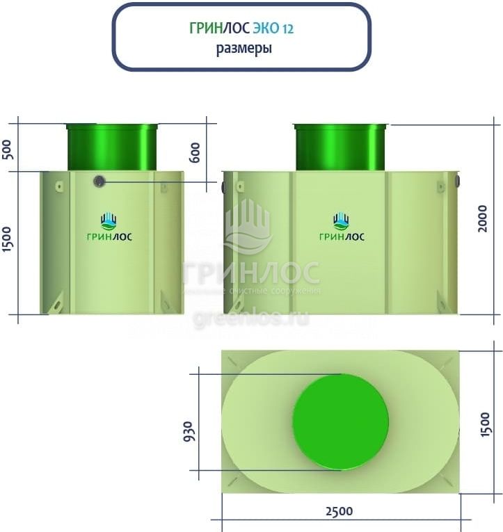ГРИНЛОС Эко 12 — это энергонезависимый септик с залповым сбросом 660 л и производительностью 2 м3/сутки, что делает его подходящим для домов, в которых число жильцов не превышает 12 условных пользователей.