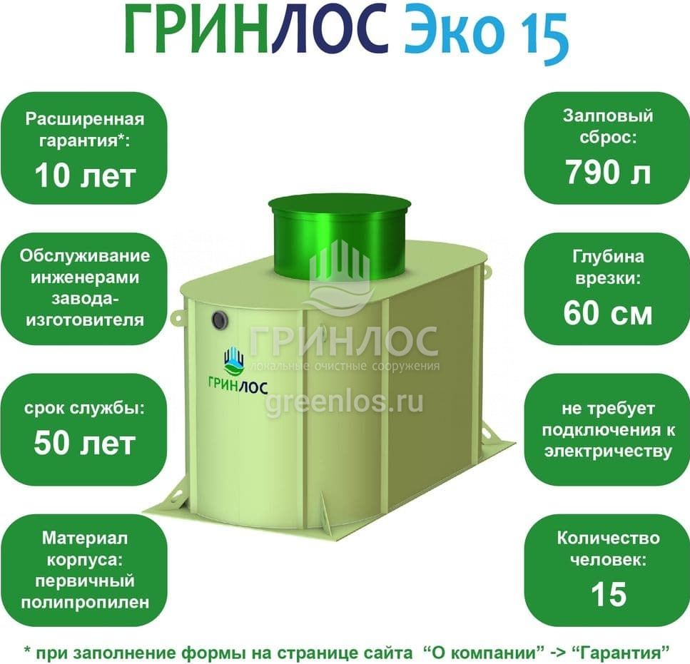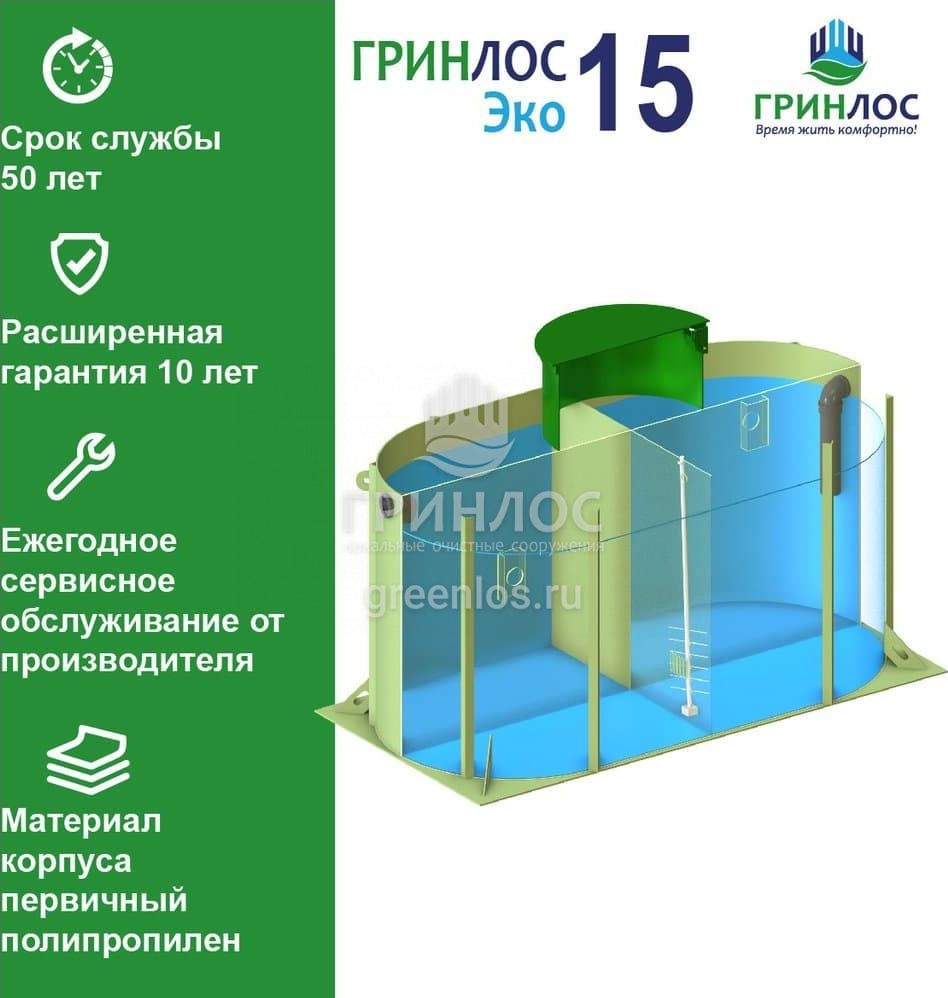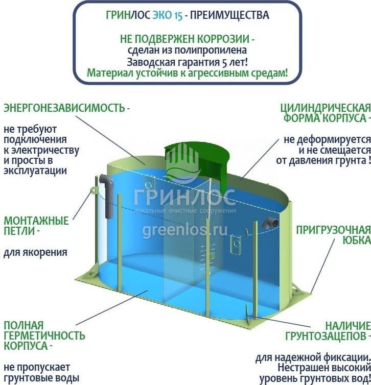 Отличительными особенностями септика ГРИНЛОС Эко 15 являются: